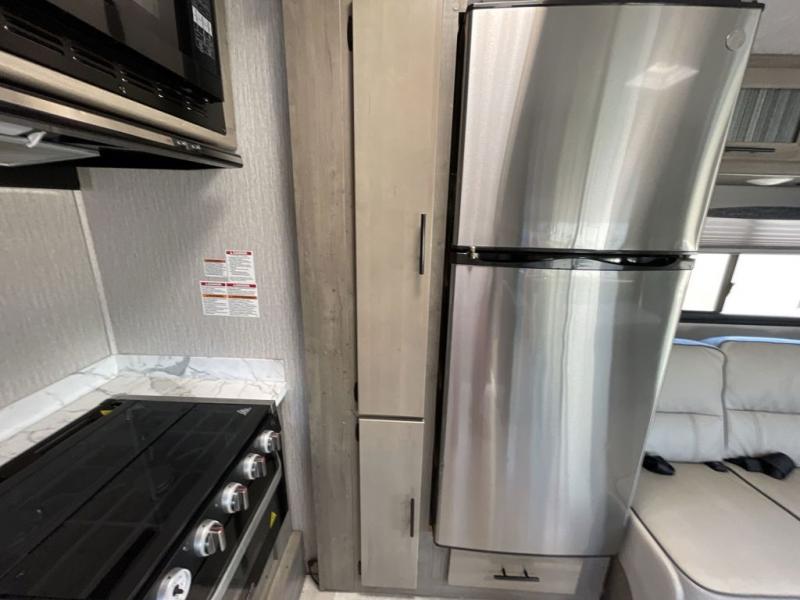 Two slide outs expand your vacation in this fun motorhome! Relax in the living area with a 62” sofa, or swap it out for optional recliners. The J-lounge dinette with 18” extension provides another space for leisure time or gourmet meals. The kitchen layout feels spacious with two pantries and thermofoil countertops with a flip-down extension for extra prep space. In the rear, you’ll find a queen bed with overhead cabinet and dual nightstands, plus a roomy bath with shower and linen closet. Outside is an awning and you can even add on an optional outdoor kitchen table for more fun in the sun! This model also includes the CRV Supersprings Ride with heavy duty stabilizer bars, chassis electronic stability control, SumoSprings front shock absorbers, and more!