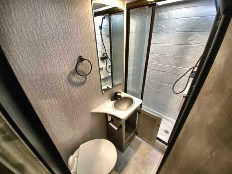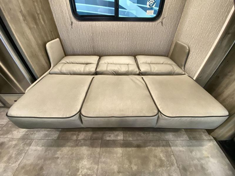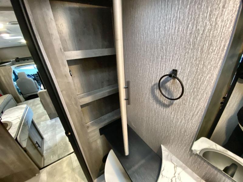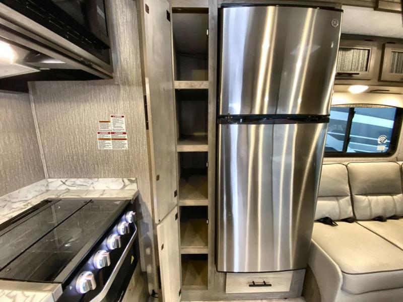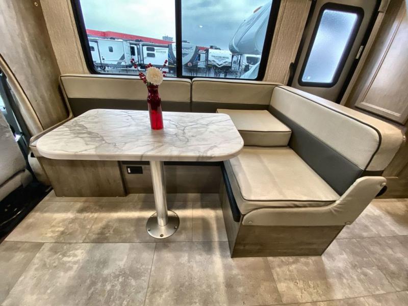 Two slide outs expand your vacation in this fun motorhome! Relax in the living area with a 62” sofa, or swap it out for optional recliners. The J-lounge dinette with 18” extension provides another space for leisure time or gourmet meals. The kitchen layout feels spacious with two pantries and thermofoil countertops with a flip-down extension for extra prep space. In the rear, you’ll find a queen bed with overhead cabinet and dual nightstands, plus a roomy bath with shower and linen closet. Outside is an awning and you can even add on an optional outdoor kitchen table for more fun in the sun! This model also includes the CRV Supersprings Ride with heavy duty stabilizer bars, chassis electronic stability control, SumoSprings front shock absorbers, and more!