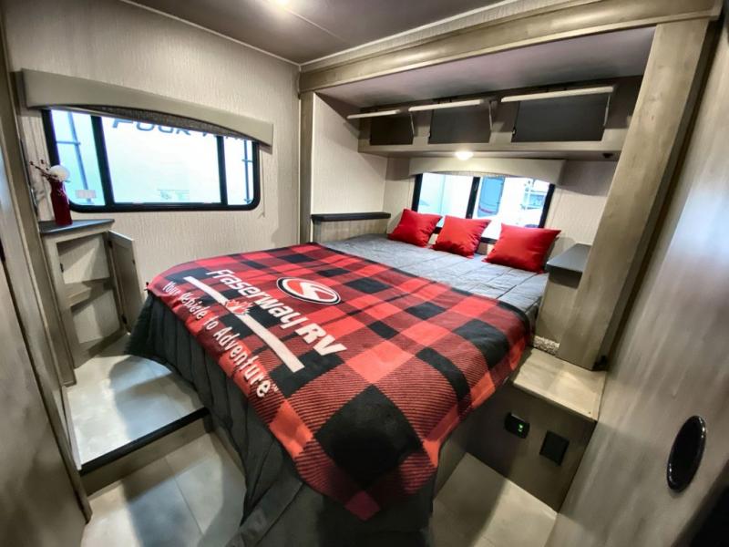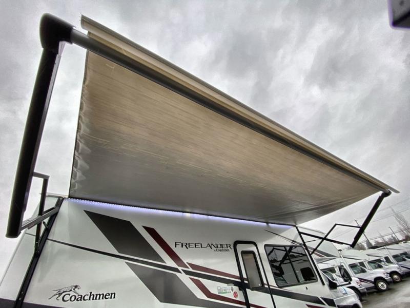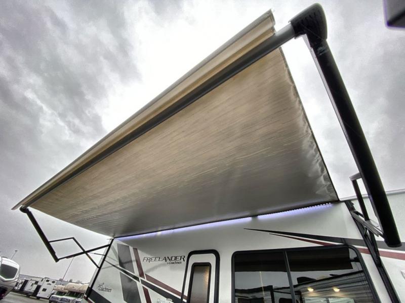 The Freelander Class C gas motorhome by Coachmen is a wonderful choice for anyone looking to get out on the road. A wide variety of floorplans and features offers something for everyone. The Azdel composite sidewalls and CrossFlex PVC polyester reinforced roof material provide a solid structure to enjoy all your trips. Conveniences like an over-door magazine rack with an HDMI and charge station and reclining cockpit seats are standard, along with a rear color backup camera, a premium showerhead and faucet, and one-piece thermofoil countertops. You might like to add the optional Platinum Edition that comes with sideview cameras, upgraded running boards, a convection microwave, and many more features!