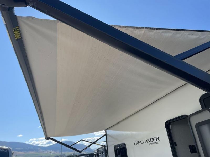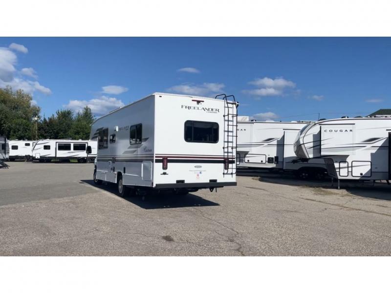 The Freelander Class C gas motorhome by Coachmen is a wonderful choice for anyone looking to get out on the road. A wide variety of floorplans and features offers something for everyone. The Azdel composite sidewalls and CrossFlex PVC polyester reinforced roof material provide a solid structure to enjoy all your trips. Conveniences like an over-door magazine rack with an HDMI and charge station and reclining cockpit seats are standard, along with a rear color backup camera, a premium showerhead and faucet, and one-piece thermofoil countertops. You might like to add the optional Platinum Edition that comes with sideview cameras, upgraded running boards, a convection microwave, and many more features!