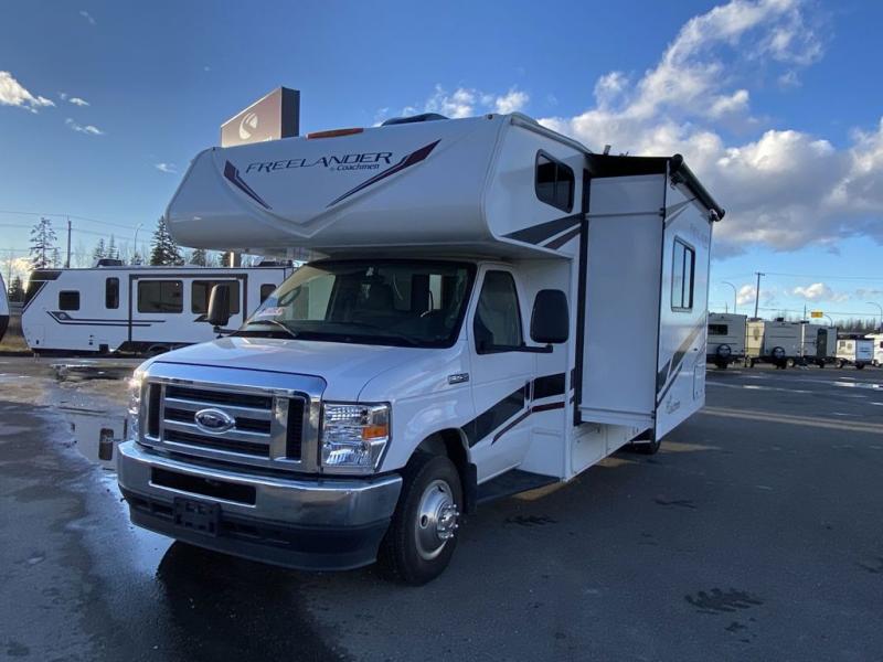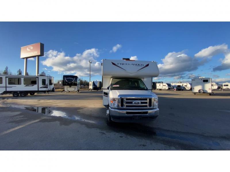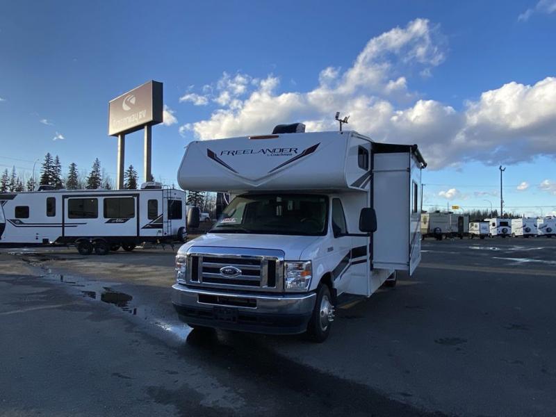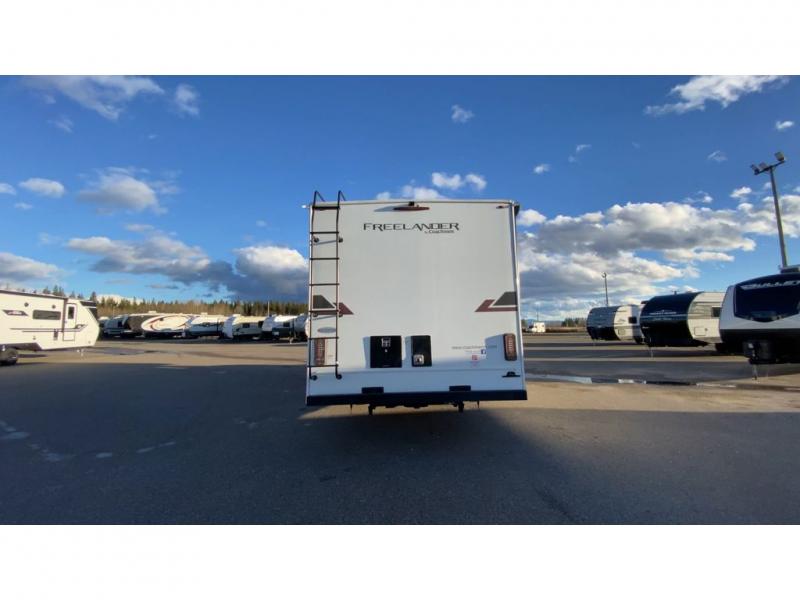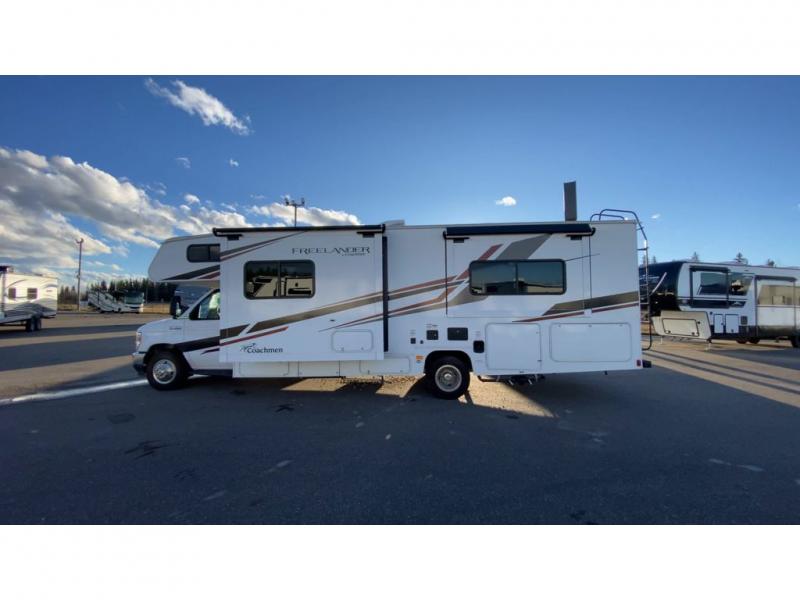 The Freelander Class C gas motorhome by Coachmen is a wonderful choice for anyone looking to get out on the road. A wide variety of floorplans and features offers something for everyone. The Azdel composite sidewalls and CrossFlex PVC polyester reinforced roof material provide a solid structure to enjoy all your trips. Conveniences like an over-door magazine rack with an HDMI and charge station and reclining cockpit seats are standard, along with a rear color backup camera, a premium showerhead and faucet, and one-piece thermofoil countertops. You might like to add the optional Platinum Edition that comes with sideview cameras, upgraded running boards, a convection microwave, and many more features!