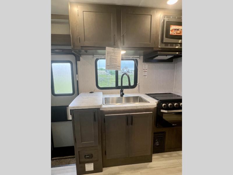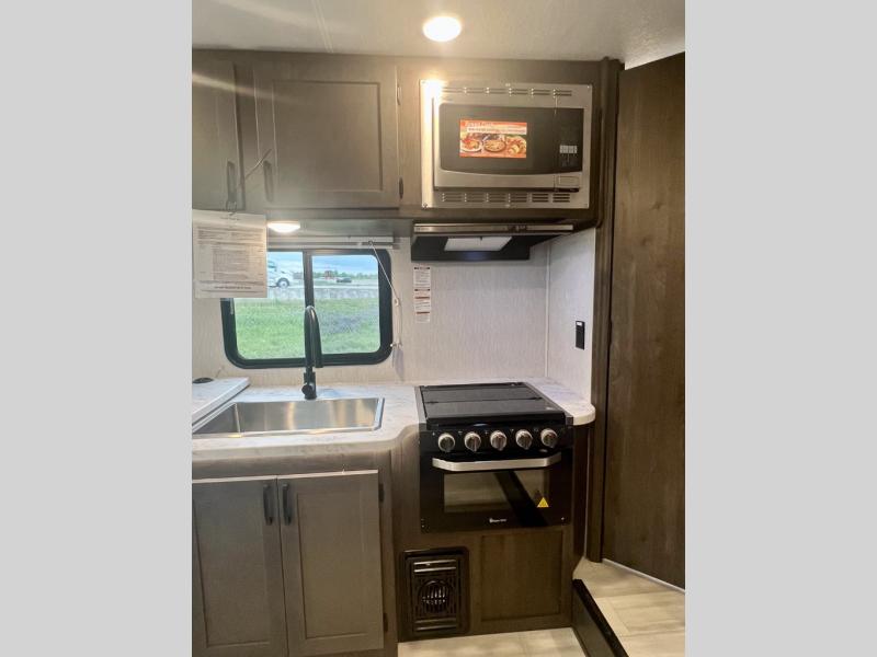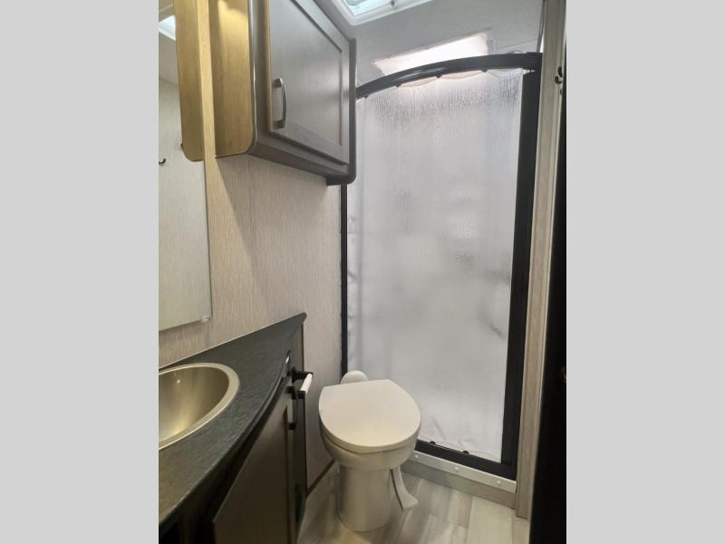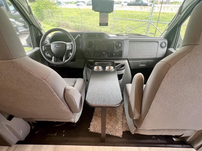 With each Leprechaun Class C gas motorhome by Coachmen you will enjoy "better" interior appointments, like the premium hardwood cabinet doors and drawer fronts, the one-piece thermofoil countertops, and the premium vinyl flooring. You will sleep soundly each night on the upgraded mattress, and staying clean will be easy with the premium showerhead and faucet in the bath. These models include reclining cockpit seats, cruise control, and a rear backup camera so you can easily get in and out of the campground. The Leprechaun is constructed with Azdel composite sidewalls, CrossFlex PVC, polyester reinforced roof material, and vacu-bond laminated walls, roof, and floor for a durable motorhome made to last.