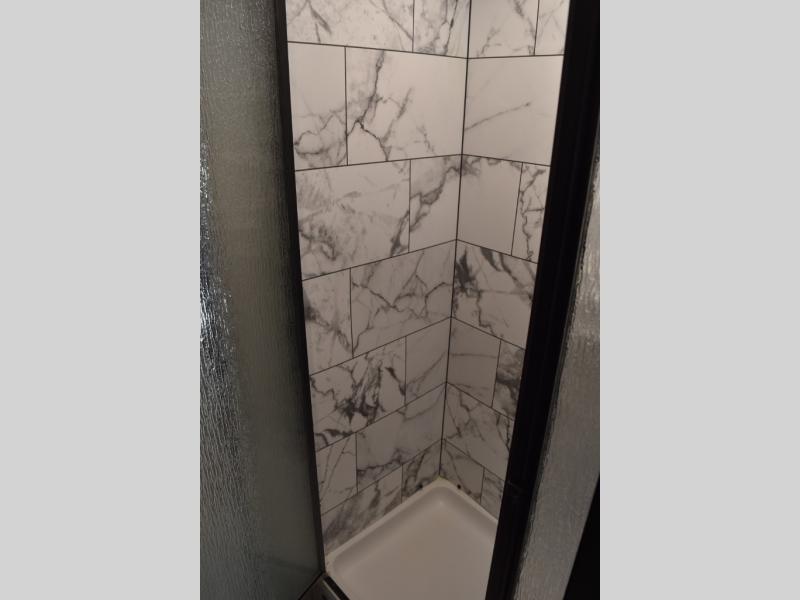 You'll have the time of your life in this Leprechaun Class C gas motorhome! There is a rear private bedroom with a queen-size bed and a wardrobe slide, and the bedroom is right next to the bathroom for convenience. Here you'll find a private toilet and sink, with the shower right across the hall, and you can close off this space to make one big bathroom if you want! Out in the main living area, there is a large slide that holds the U-shaped dinette and sofa. These pieces of furniture sit directly across from the kitchen so that you can chat with the chef while preparing meals on the three-burner range or in the residential-size microwave. If you like, you can add the optional outdoor camp kitchen which includes a sink and refrigerator with extending table so you can dine outdoors when you want as well, and the outside entertainment center will provide some fun while you're out there.