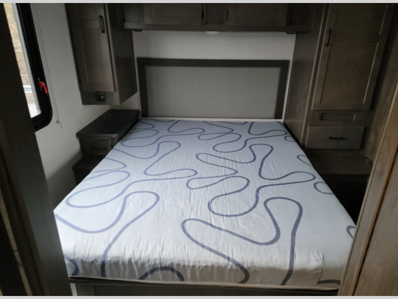You'll have the time of your life in this Leprechaun Class C gas motorhome! There is a rear private bedroom with a queen-size bed and a wardrobe slide, and the bedroom is right next to the bathroom for convenience. Here you'll find a private toilet and sink, with the shower right across the hall, and you can close off this space to make one big bathroom if you want! Out in the main living area, there is a large slide that holds the U-shaped dinette and sofa. These pieces of furniture sit directly across from the kitchen so that you can chat with the chef while preparing meals on the three-burner range or in the residential-size microwave. If you like, you can add the optional outdoor camp kitchen which includes a sink and refrigerator with extending table so you can dine outdoors when you want as well, and the outside entertainment center will provide some fun while you're out there.