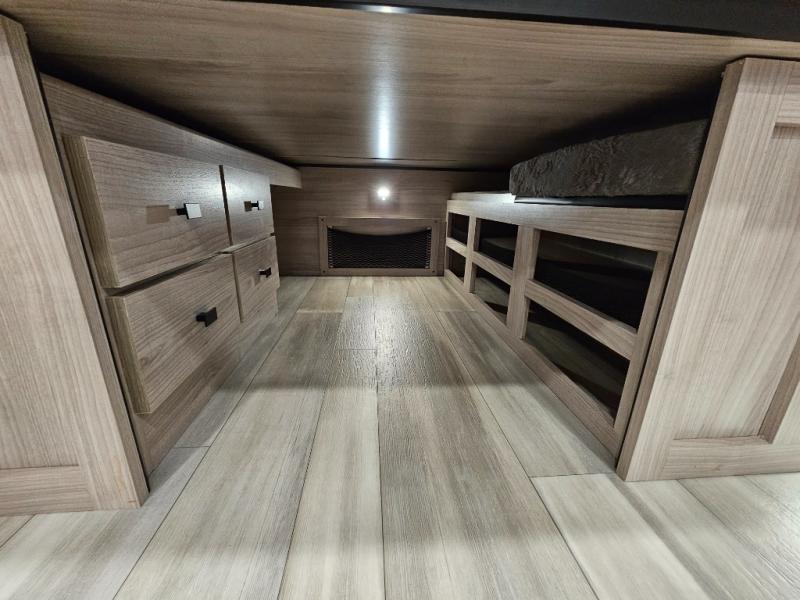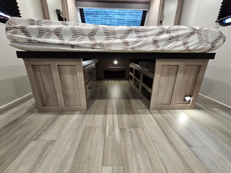 With any Northern Spirit XTR travel trailer by Coachmen you will enjoy years of use thanks to the solid construction that includes Azdel composite panels, a Tufflex PVC roof membrane, and laminated sidewalls. The panoramic front window will allow natural light in and make the area feel more open, and the "Twice Cool" dual ducted A/C unit will keep you cool during those summer camping months. Each model is pet friendly thanks to the exterior dog wash and dog leash clip, and the heated and enclosed underbelly will help extend your camping season. These travel trailers include ample storage space, including a pass-through storage with a motion activated light and Max Bed Storage on all models except 2146BHX that includes a versatile Murphy bed instead. Enjoy a little eXTRa with the Northern Spirit XTR travel trailers!