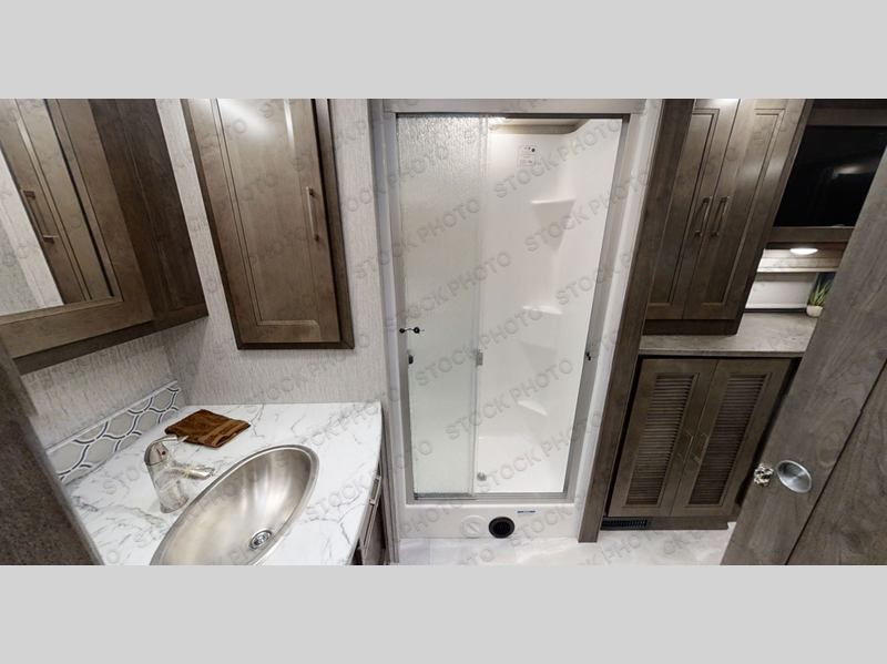 The Sportscoach SRS Class A diesel motorhome by Coachmen sits on a straight rail Freightliner chassis with a 340 HP ISB Cummings rear diesel engine that will deliver power to your excursions. Each coach features chassis air suspension and air brakes, an 8,000 lb. towing hitch, and an outside entertainment center with a 40" TV to watch the big game outdoors. Some of the electrical, heating, and AC amenities you will appreciate are the 6.0 kW diesel generator, the 100 watt solar panel with a controller, and the two 15,000 BTU A/C units. The galley features convenient pop-up recept with USB ports, stylish kitchen backsplash, and a stainless steel farmhouse style sink that will make clean-up easier than ever. Comfort will come easy with the upgraded mattress in the bedroom, along with a residential style headboard and a king bed. Affordable, powerful, and comfortable; what's not to love about the Sportscoach SRS Class A diesel coach!