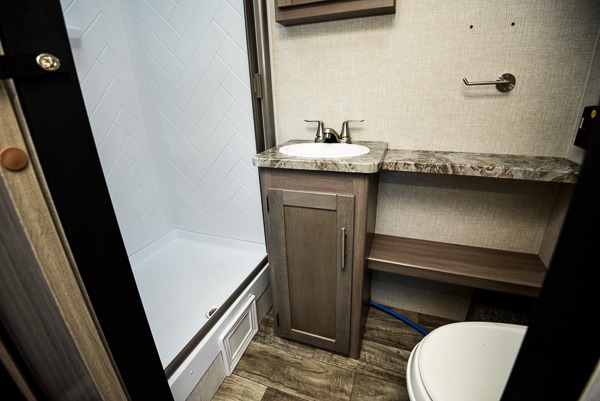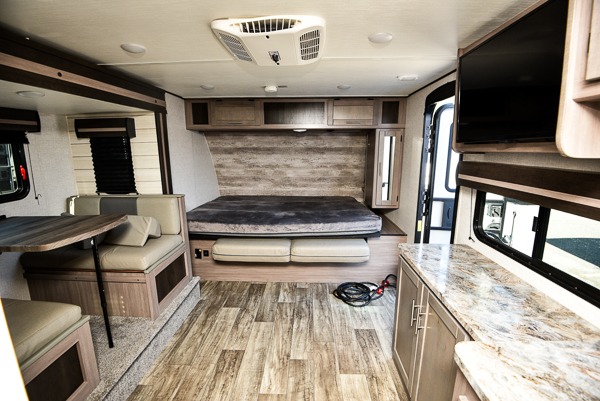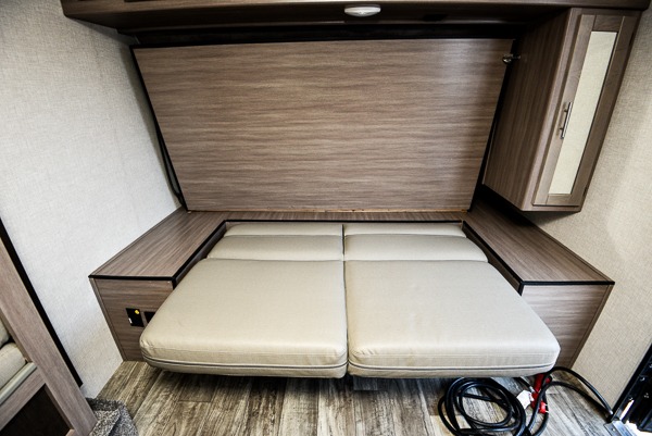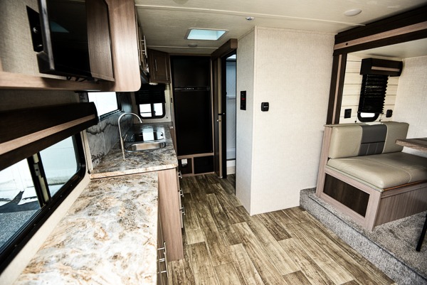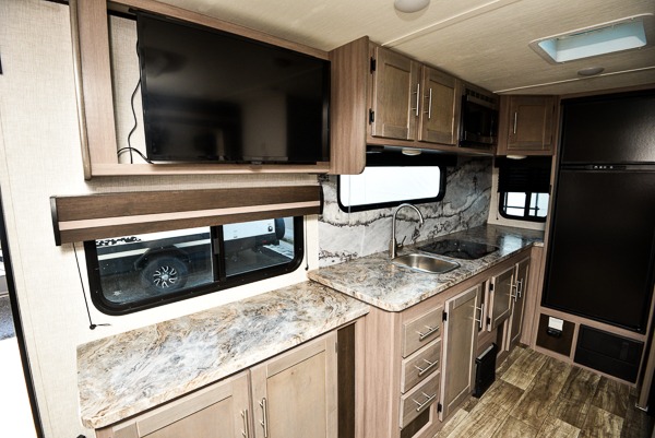 This spacious travel trailer is perfect for a couple plus an overnight guest or two. You can enjoy the jackknife sofa during the day and the queen-size Murphy bed at night, and the slide out will provide additional interior space. Spend your day at the lake or hiking the trails, and when you return you can freshen up in the full bath that includes a 30" x 36" shower. Whip up your best dinner on the cooktop or use the stainless steel microwave, and you'll find plenty of counter space to set out fresh fruits and veggies to snack on.