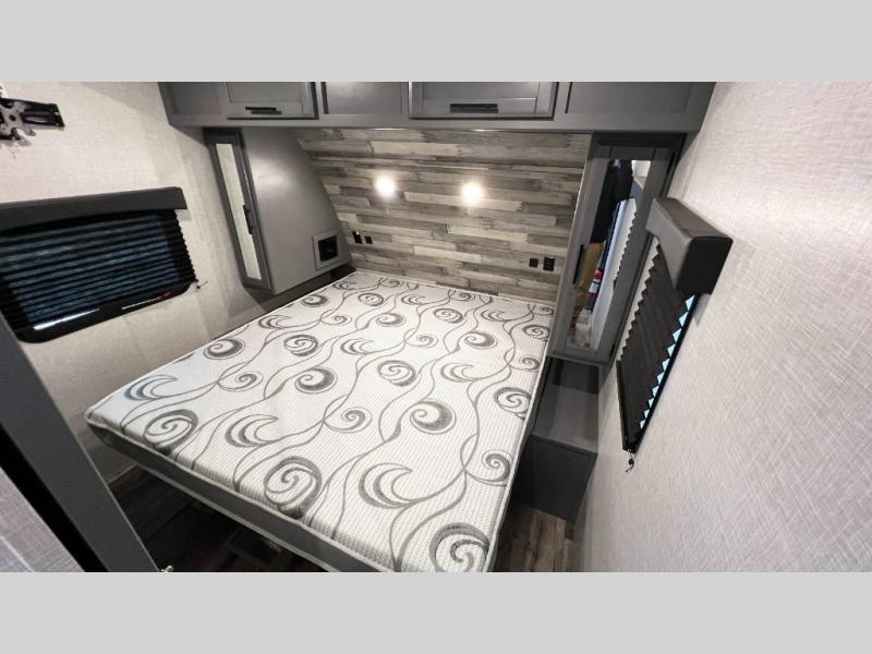 Each Volante fifth wheel or travel trailer by CrossRoads RV includes features and options that will enhance your camping experience. The fiberglass front cap is sure to be eye-catching, and you can plan to camp year around with the fully enclosed and forced air heated underbelly. There is also an outside shower, an electric awning with LED lights, outdoor speakers with LED accents, plus many more exterior conveniences. The interior of each Volante will have you feeling right at home with premium residential furniture, coordinating window treatments in the bedroom, nightstands with outlets in the bedroom, plus USB ports to keep your electronics charged. You will also appreciate a 13,500 BTU A/C, plus solar power prep and WiFi prep if you need to get some work done while you're away from home.