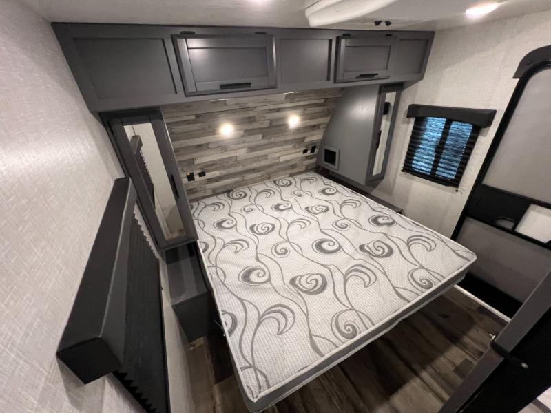 Each Volante fifth wheel or travel trailer by CrossRoads RV includes features and options that will enhance your camping experience. The fiberglass front cap is sure to be eye-catching, and you can plan to camp year around with the fully enclosed and forced air heated underbelly. There is also an outside shower, an electric awning with LED lights, outdoor speakers with LED accents, plus many more exterior conveniences. The interior of each Volante will have you feeling right at home with premium residential furniture, coordinating window treatments in the bedroom, nightstands with outlets in the bedroom, plus USB ports to keep your electronics charged. You will also appreciate a 13,500 BTU A/C, plus solar power prep and WiFi prep if you need to get some work done while you're away from home.