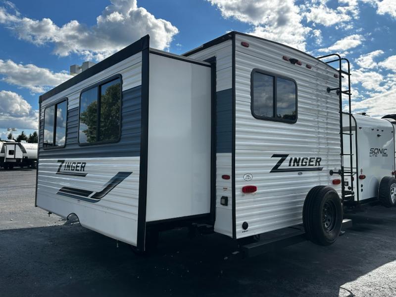 Join the CrossRoads family with a Zinger Lite travel trailer! You'll enjoy an abundance of standard features you would usually find with higher priced travel trailers. Each model features an aerodynamic front end for a more sleek look and better wind resistance when towing. You will appreciate the molded rain gutters with 3" drip spouts, plus Secure Stance entry steps and Keyed-A-Like doors. Having an AM/FM stereo with a Bluetooth soundbar will allow you to listen to your favorite tunes as you camp, and there are outdoor speakers with LED accents if you plan to take the party outdoors. The Zinger Lite also features a 81" interior ceiling height, generous storage space, plus popular options that can be added to further customize your RV. Choose yours today!