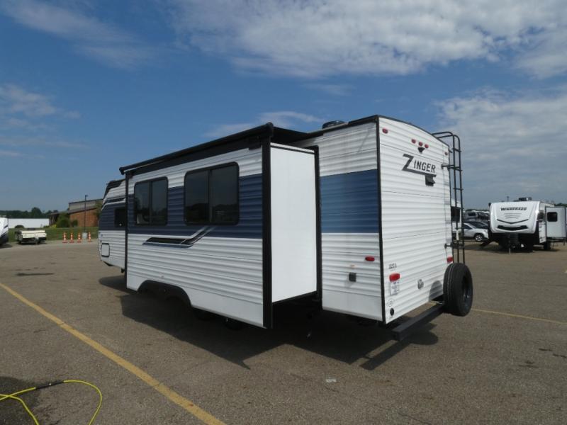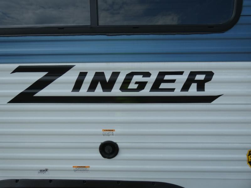 Lead your family to a great vacation getaway in any one of these CrossRoads RV Zinger travel trailers! They come with a fully enclosed underbelly with forced heat (varies by model) so that you can head to your favorite spot no matter what mother nature throws your way. The outside hot/cold shower will help keep mud from being tracked inside, and the Keyed-A-Like lock system will give you peace of mind at night or while you're away from the trailer. With an aerodynamic front end, you will get better gas mileage, and crank up the tunes with the outside speakers with LED accents. Start making memories in one of these models today!