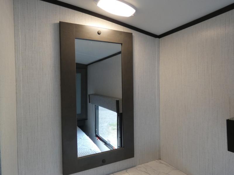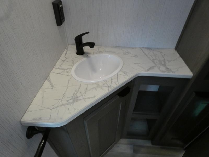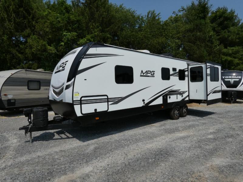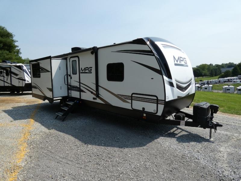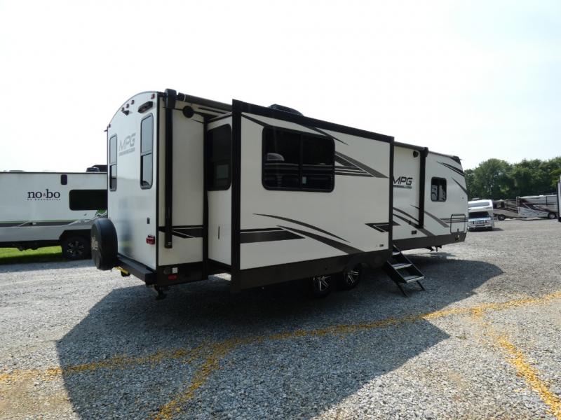 With any MPG travel trailer or toy hauler by Cruiser you will find a 6' 11" barrel roof, Azdel composite laminated walls, and a high gloss fiberglass front cap with LED lighting for a sleek look. There are seamless kitchen countertops and plywood flooring that will be easy to clean, plus residential hardwood cabinets with hidden hinges for a more at-home feel. The slam latch baggage doors with magnetic latches will make loading up easier than ever, plus the full belly storage system includes LED lights you are sure to appreciate. Each model also includes multiple charging stations with 12v and USB ports, a four speaker soundbar system to listen to your playlists, and a dual ducted A/C to keep you cool during those hot summer months!