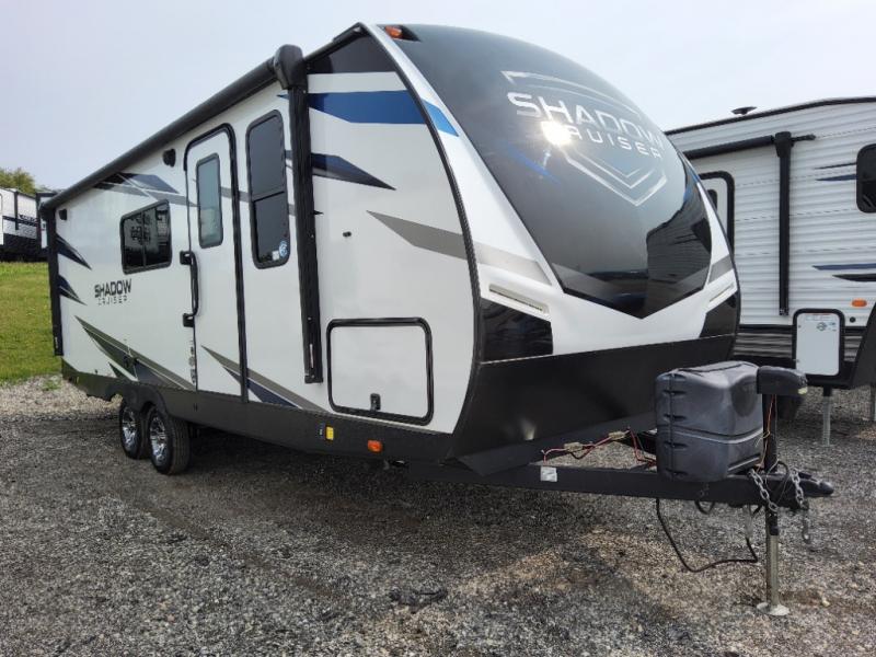 Each one of these Cruiser Shadow Cruiser travel trailers come with convenient features for you to make memories that will last a lifetime! The five sided aluminum framing holds together the Azdel composite laminated sidewalls which will keep your unit from rotting away, plus the surround seal slide system has a rain gutter to aid in keeping water out. Their strong foundation is built with a powder coated structural I-beam frames and three times the amount of required full-height cross members to provide a more solid floor foundation with more attachment points. Travel any time of year with the Extended Season package that includes radiant foil and ducted heating. There is also dual ducted 13,500 BTU A/C to keep you cool and a high BTU ducted furnace to keep you warm. The patent pending full belly pass-through storage area is LED lit so you can see all of your gear and slam latch baggage doors with magnetic latches to keep it in place while you access your items. Come find the perfect model for you today!
