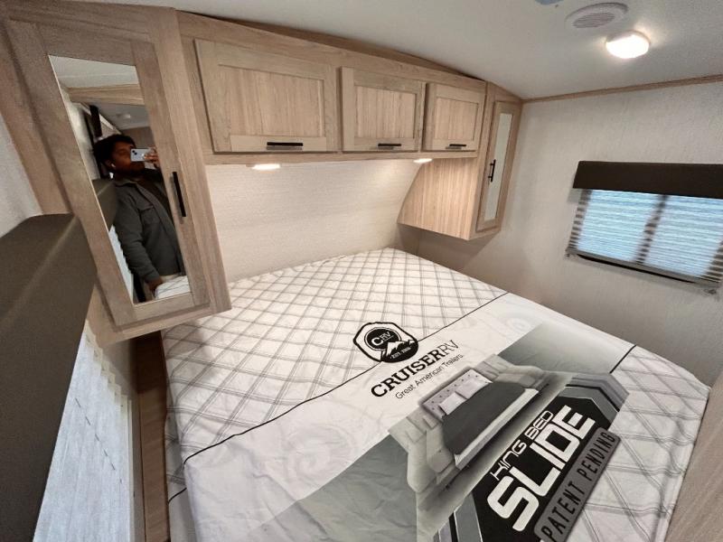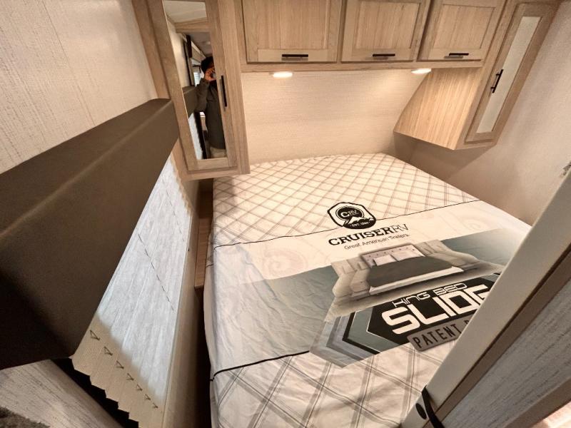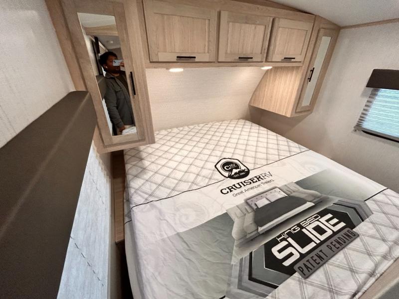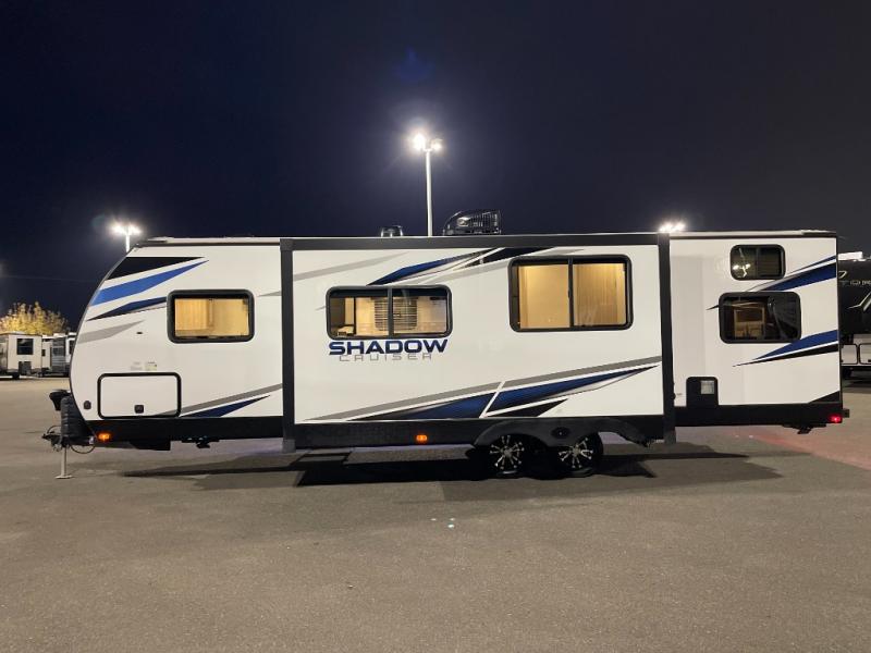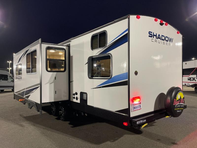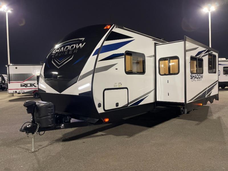 Each one of these Cruiser Shadow Cruiser travel trailers come with convenient features for you to make memories that will last a lifetime! The five sided aluminum framing holds together the Azdel composite laminated sidewalls which will keep your unit from rotting away, plus the surround seal slide system has a rain gutter to aid in keeping water out. Their strong foundation is built with a powder coated structural I-beam frames and three times the amount of required full-height cross members to provide a more solid floor foundation with more attachment points. Travel any time of year with the Extended Season package that includes radiant foil and ducted heating. There is also dual ducted 13,500 BTU A/C to keep you cool and a high BTU ducted furnace to keep you warm. The patent pending full belly pass-through storage area is LED lit so you can see all of your gear and slam latch baggage doors with magnetic latches to keep it in place while you access your items. Come find the perfect model for you today!