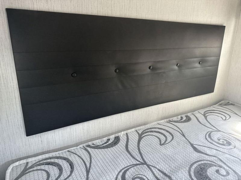 True luxury is having two full bathrooms, and this South Fork fifth wheel delivers that and more! One of the full bathrooms is located in the back creating a bunkhouse suite. This area is also special because it contains the second exterior entry door as a unique rear entry door. Now you don't have to be bothered by kids coming and going while you stay secluded up at the front in your own private bedroom. This bedroom has a king-size pillowtop mattress so that you can sleep in extreme comfort each night, and there is also a full-width wardrobe for you to store your many different outfits. The 50" TV with integrated sound bar will provide great entertainment for the whole group, and there is a sofa and half booth dinette for you to relax on while you watch.