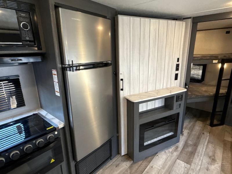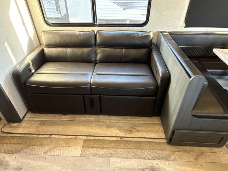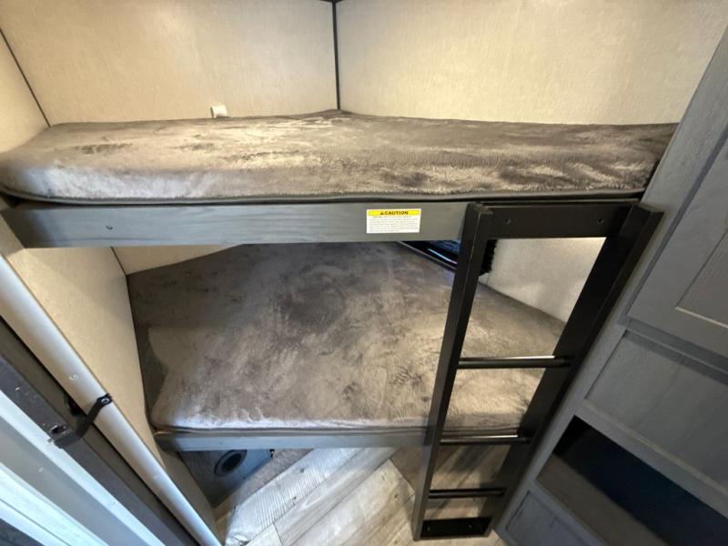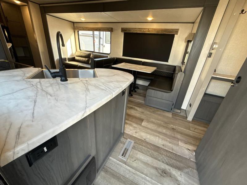 There's something for everyone in this Aspen Trail travel trailer from the front private bedroom with a residential queen bed to the rear private bunkhouse that your kiddos will absolutely love. They can even invite a couple of friends to tag along thanks to the three bunk beds and den cube. The chef of your group will love grilling at the outdoor kitchen. The large slide that holds the U-shaped dinette and sofa provides extra walking space, as well as a comfortable place to wind down your nights and socialize with each other!