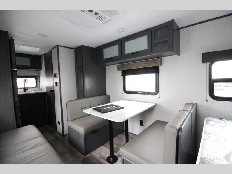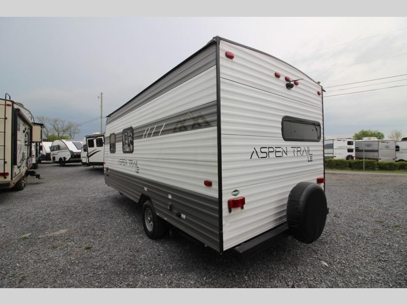 With any Aspen Trail LE travel trailer by Dutchmen, you will have a durable roof structure with a TPO roof, 3/8" decking, fiberglass insulation, and an insulated structure with a metal exterior panel, a wood frame with R7 thermal insulation and a lauan interior panel, plus superior A/C cooling. The interior offers a Home Series interior design collection for an at home feel, full extension drawer guides throughout, mini blinds throughout for privacy, and LED interior lighting to see clearly day or night. Make your selection today and enjoy a smaller, lighter-weight RV!