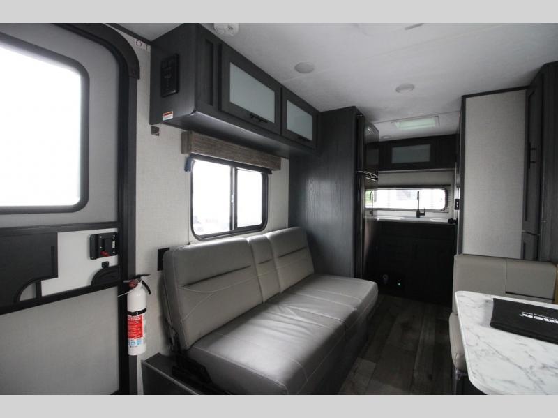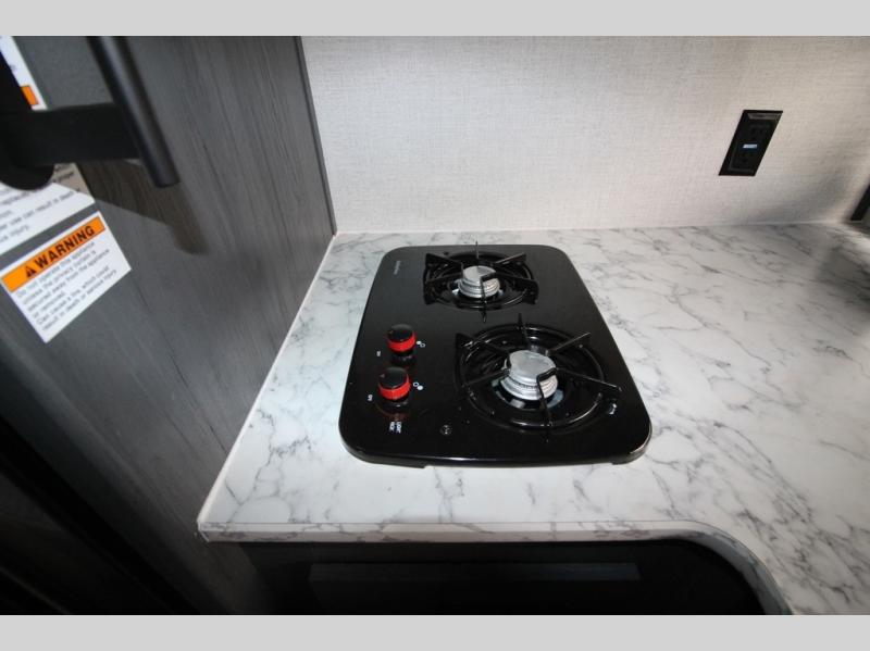 You and your spouse will love camping in this travel trailer! Get a good night's rest each night on the front queen bed with storage for your items, and enjoy your meals at the booth dinette which were prepared with the two burner range and 7 cu. ft. refrigerator, plus you can even transform the dinette into an extra sleeping space. Take an afternoon nap on the jackknife sofa or freshen up in the rear corner bathroom. With oversized windows throughout, you will enjoy plenty of sunlight!