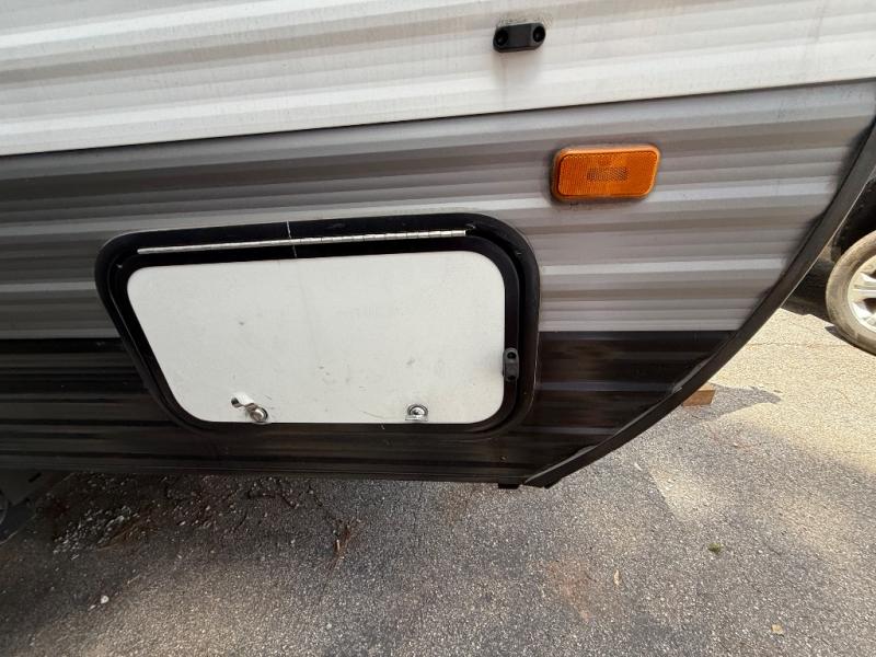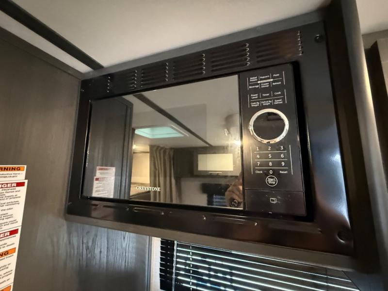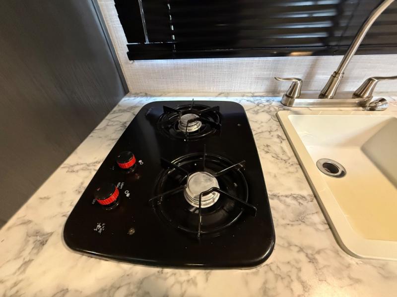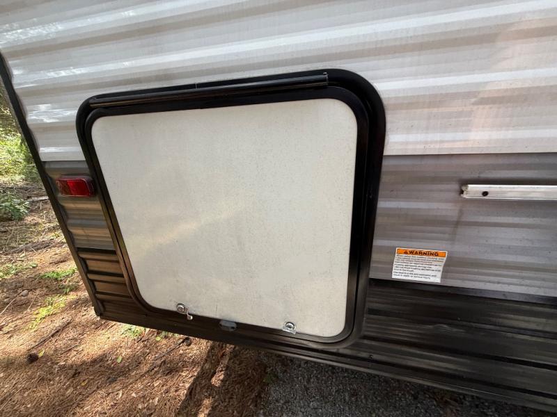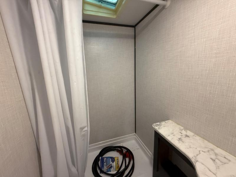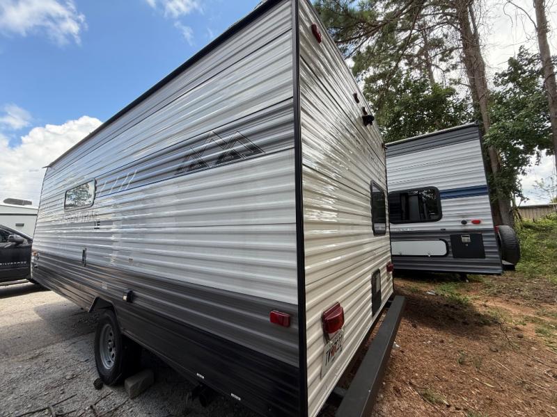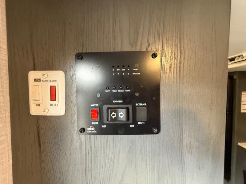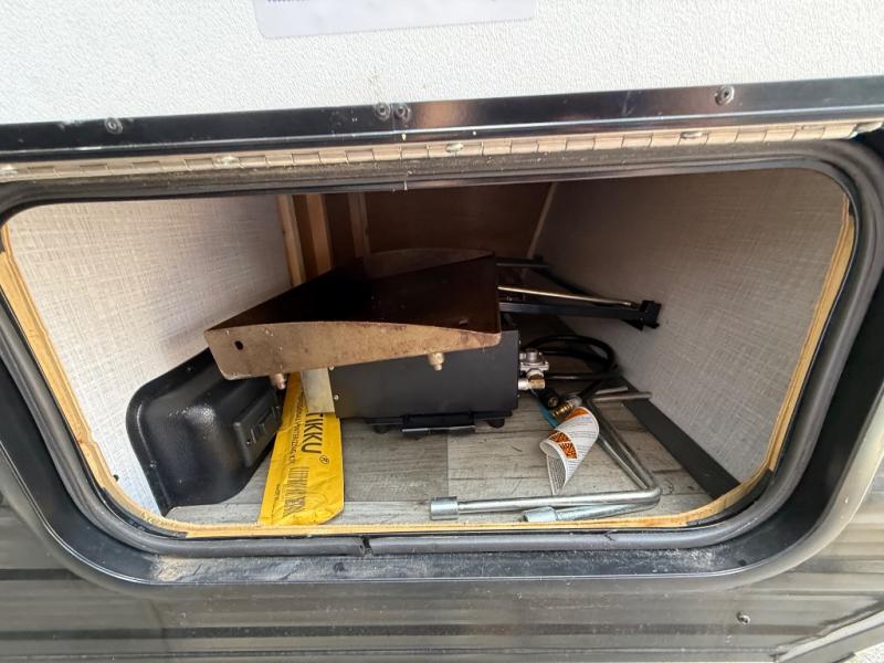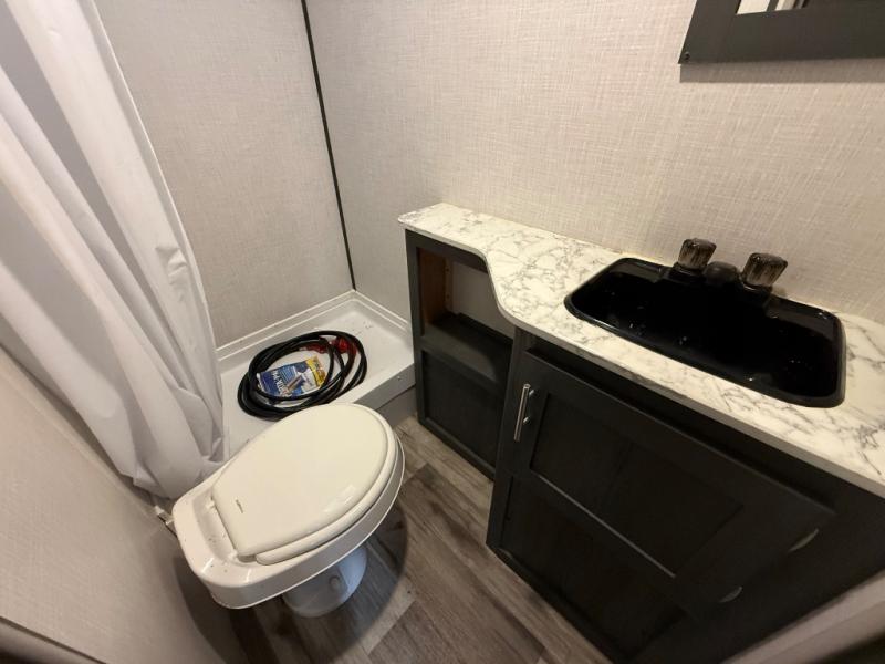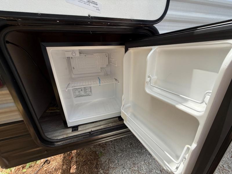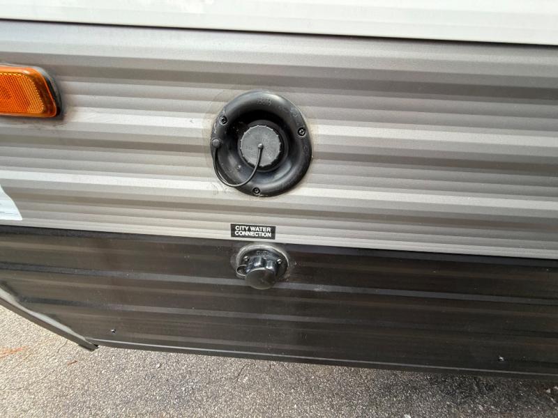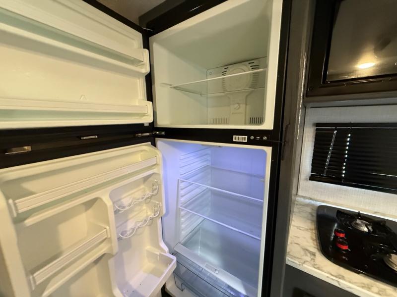 An inside kitchen, an outside refrigerator, a full bathroom and sleeping space for five to seven sound like the perfect RV for you? This trailer offers all that with bunk beds, a residential queen bed and the booth dinette, plus you will have storage in the wardrobe, the overhead cabinets and along the exterior for the larger outdoor items. And the galley kitchen sink with high rise faucet makes cleanup easy.