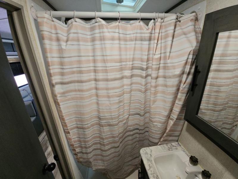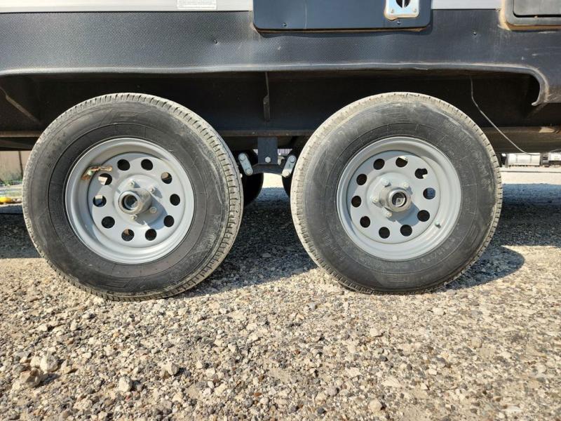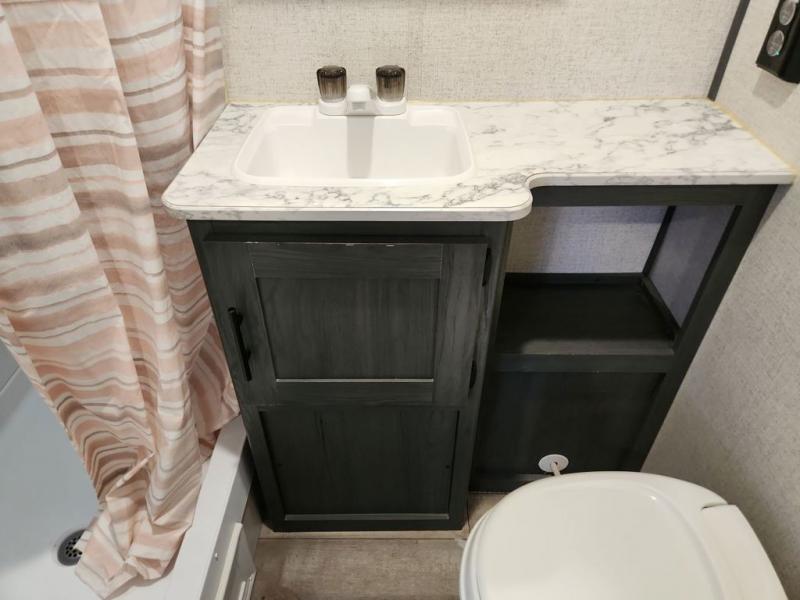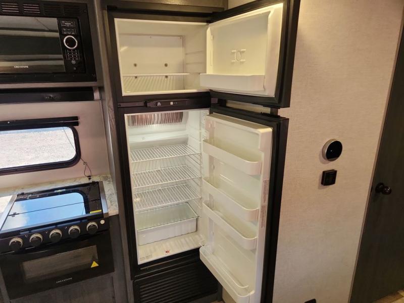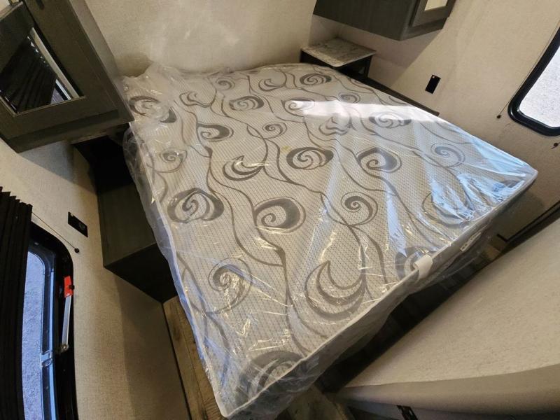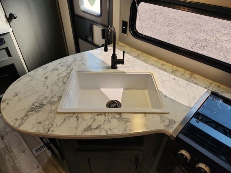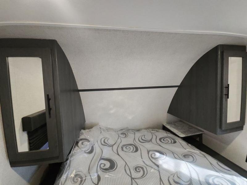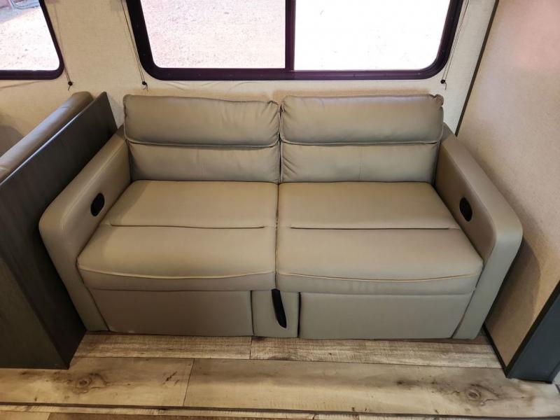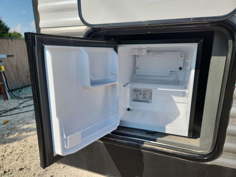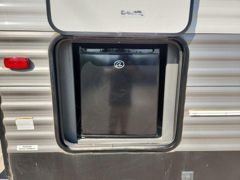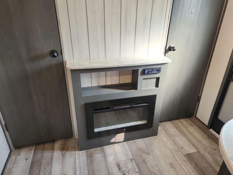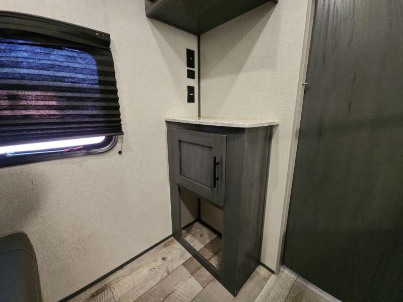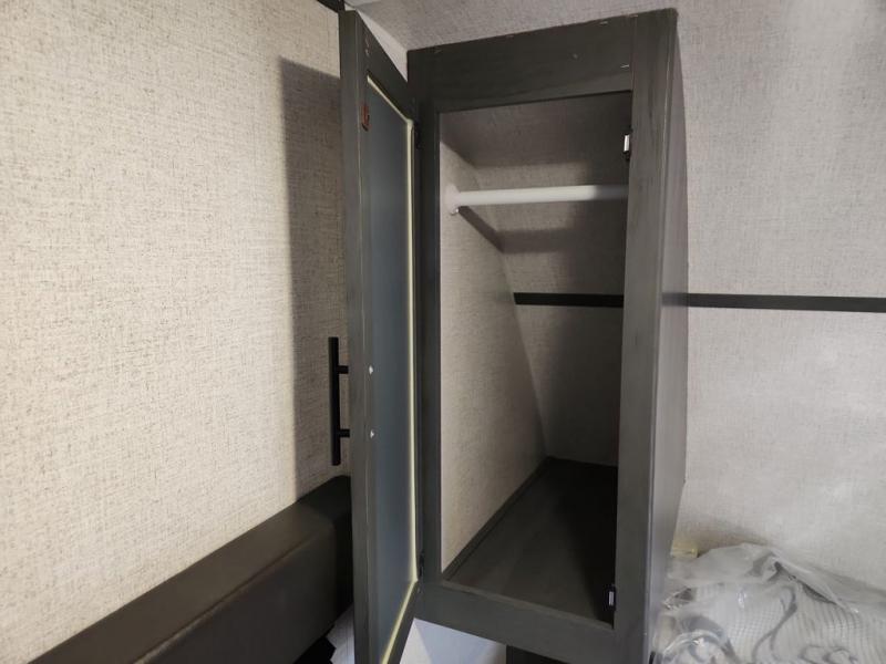 The private bunkhouse might be the main reason you chose this trailer or maybe it was the outside kitchen, either way you will enjoy camping with your family and friends every chance you get. The bunkhouse offers triple bunk beds and a sofa, allowing four people to sleep in privacy. You will have your own bedroom up front to sleep on a residential queen bed with dual access, wardrobes and windows to enjoy the campsite view. The full bathroom offers convenience, and the slide out offers more floor space to move about. There is a booth dinette and sofa to relax on as well as provide more sleeping space for friends and family. The cook will have full amenities including a three burner range top, a galley sink with high rise faucet, plus a 7 cu. ft. refrigerator to store the cold items.
