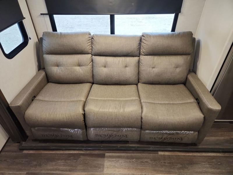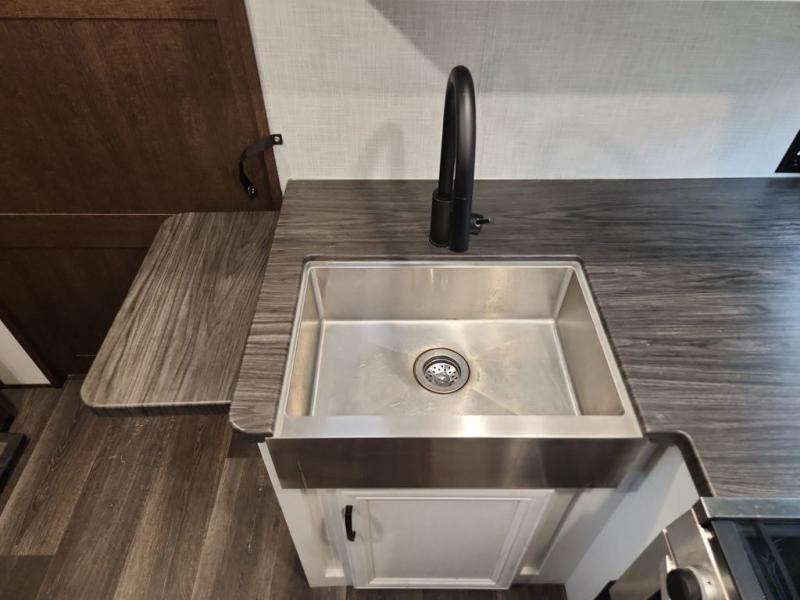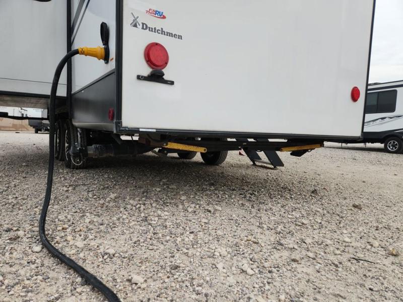 Journeys have never been more fun or packed with amenities than with the Dutchmen Atlas fifth wheel or travel trailer! These units come equipped with outside speakers, preparations for a backup camera, an oversized lighted pass-through storage, and a fully enclosed and heated underbelly. The friction-hinge entry door won't fly away when you open it, and the exterior spray port lets you hook up a hose to provide water when you need it. The fifth wheels have an electric four-point leveling system, and the travel trailers have electric stabilizer jacks. A painted fiberglass front cap protects the front portion of your Atlas, and the electric adjustable awning with LED lights is going to allow you to party outside with shade when you want it.