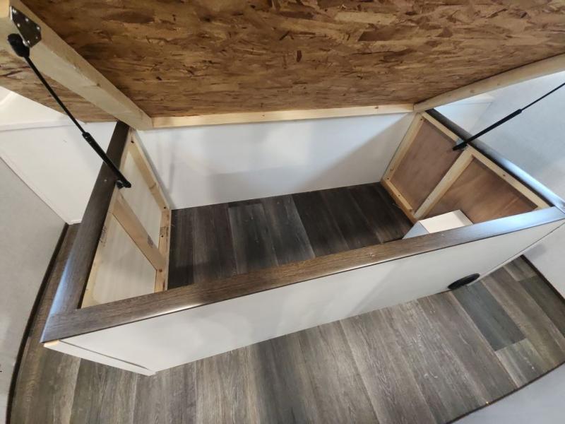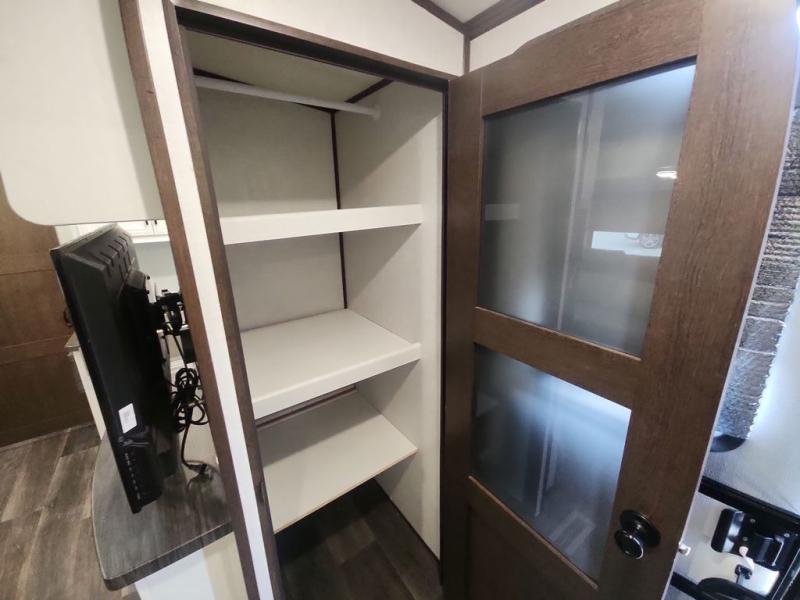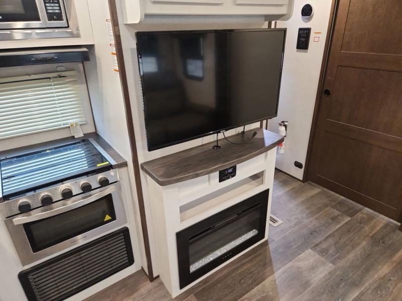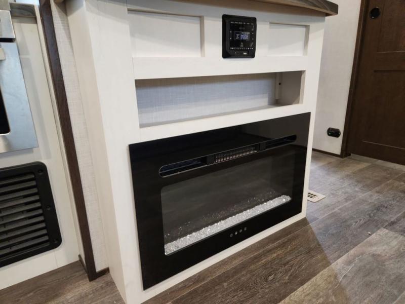 You and your spouse can have your own getaway whenever you want with this Atlas travel trailer! This trailer is perfectly suited for two people to enjoy camping, and it comes with everything needed to make you both feel comfortable, like a private bedroom with king-size bed, a 78" chaise lounge with removable table, a full rear bathroom, and a complete kitchen with countertop extension. You even have some extra amenities that put the cherry on top, like the entertainment center with an LED HDTV and fireplace below and the pop-up power station in the kitchen.