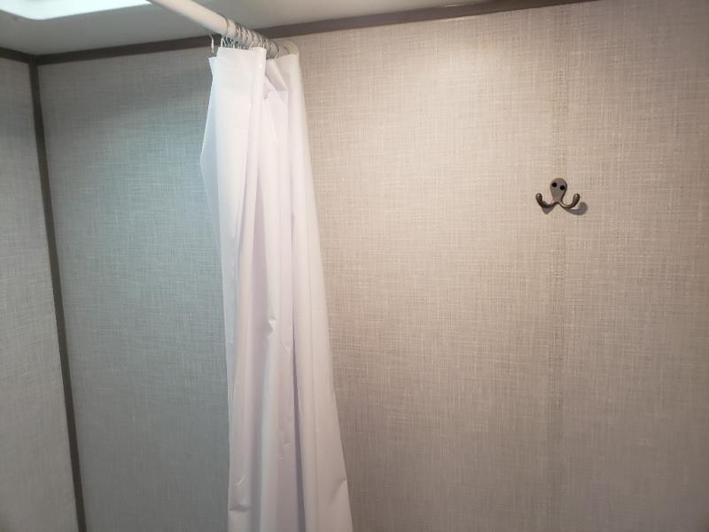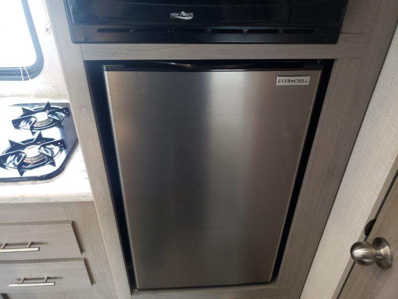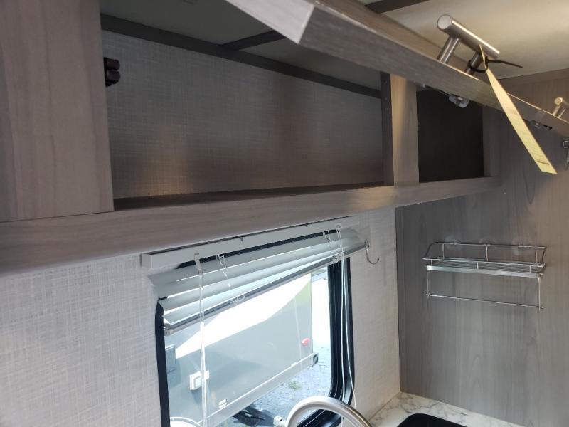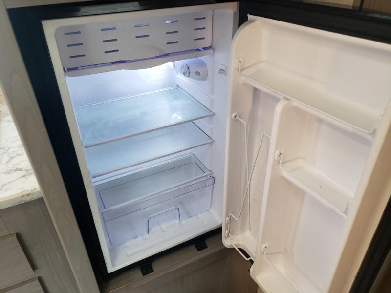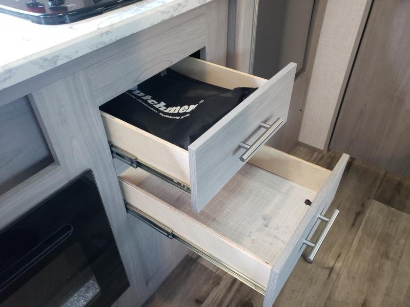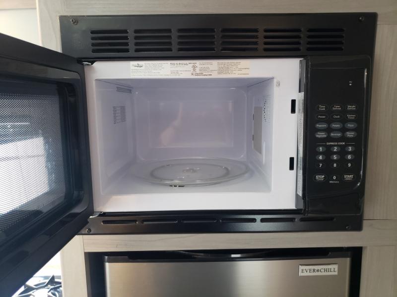 The well-equipped kitchen makes meal prep on the road feel just like home. You’ll find a reliable range, microwave, roomy refrigerator, and ample counter space for cooking everything from quick breakfasts to family dinners. With thoughtfully placed storage for cookware, pantry items, and essentials, this kitchen makes it easy to stay organized on the go.