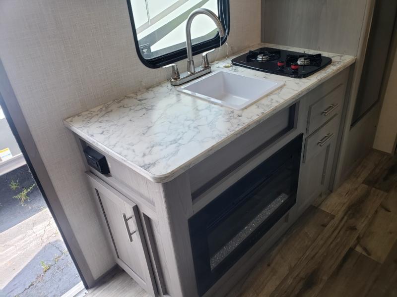 When it’s time to rest, the private sleeping area offers a cozy retreat with a comfortable bed and storage for your belongings. The adjacent bathroom features a modern layout and quality fixtures, keeping your routines simple and convenient even while you’re away from home. Every detail in the Coleman 17B is designed to enhance comfort without sacrificing space or functionality.