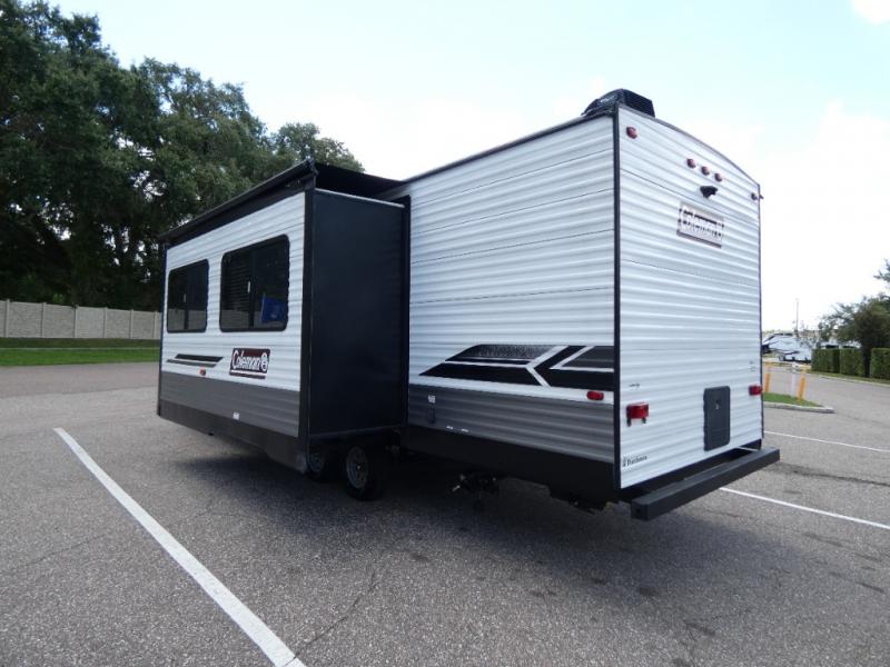 With any Coleman Lantern LT Series travel trailer by Dutchmen you will find a diamond plate rock guard, a durable roof structure with fiberglass insulation, and superior AC cooling. There are power stabilizer jacks and a power tongue jack for hassle-free set-up, plus a mega pass-through storage with magnetic catches. Head inside to find pleated night shades in the living area and bedroom, dual row LED interior lighting, upgraded Beauflor linoleum, and many more comforts. There are multiple floorplans to choose from that will fit your needs best, so don't wait! Choose a Coleman Lantern LT Series travel trailer today.