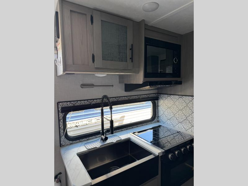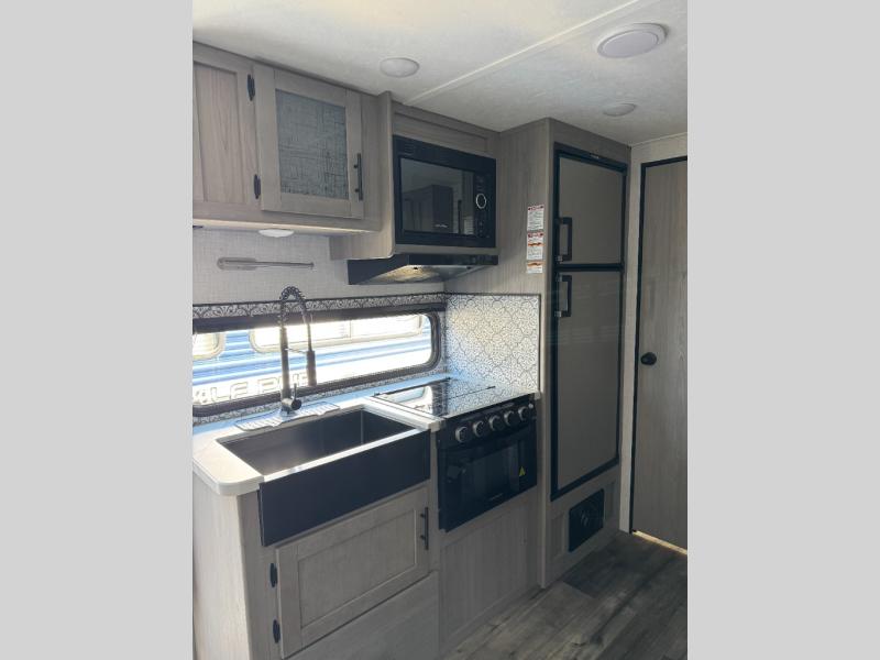 The Dutchmen Coleman Light travel trailer features an upgraded kitchen package with residential appliances, high-rise faucets, and a stainless steel farm-style sink. The fully enclosed underbelly allows all of your trailer's vital functions to be kept out of the freezing cold, and you'll have great stability as you enter your trailer by using the solid entry steps. Each model includes power stabilizer jacks, a power tongue jack, dual 20-LB propane tanks, a residential queen bed, and preparations for Wi-Fi 4G LTE. There is an aerodynamic front fiberglass cap, exterior speakers, solar charging connection, and aluminum wheels.