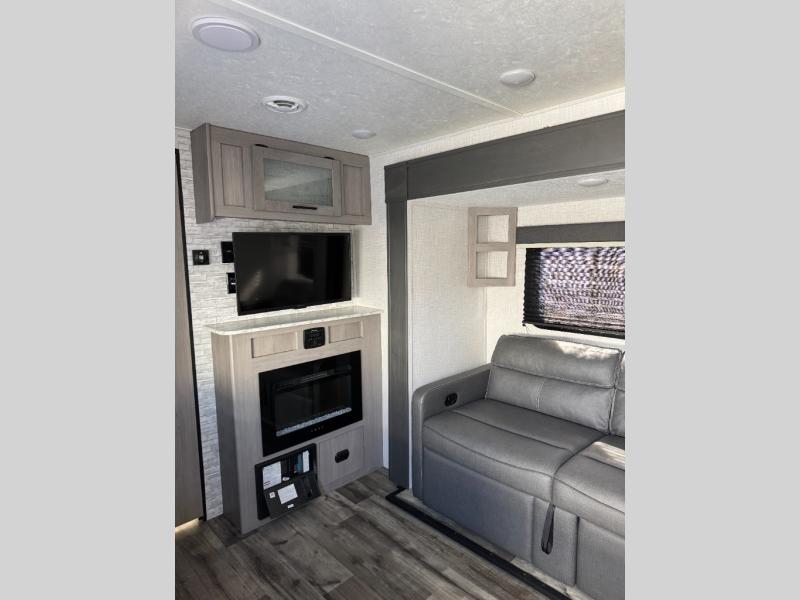 Grab this Coleman Light travel trailer if you're looking for an easy way to get started camping! This trailer has a rear bathroom with all of the essentials, and the kitchen is also equipped with your favorite amenities, like a 7-cubic foot refrigerator and three-burner cooktop. You'll have a single slide to create more interior living space, and the sofa with indoor/outdoor table can be used when it's time to eat dinner. Rest easily on the residential queen bed, and stay cool while indoors with the 13,500 BTU air conditioner. You'll also have USB power outlets to use when you need to charge your phone.