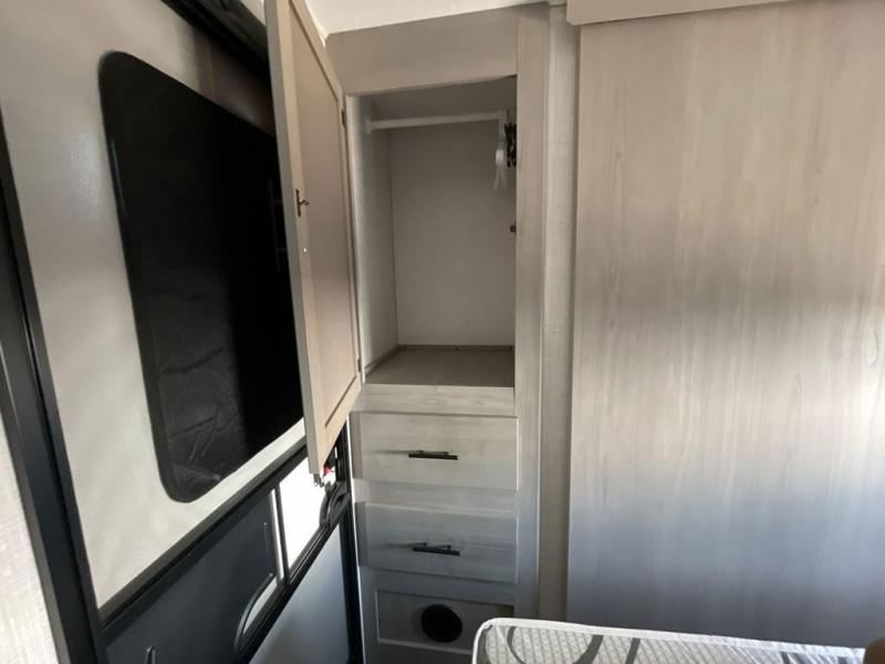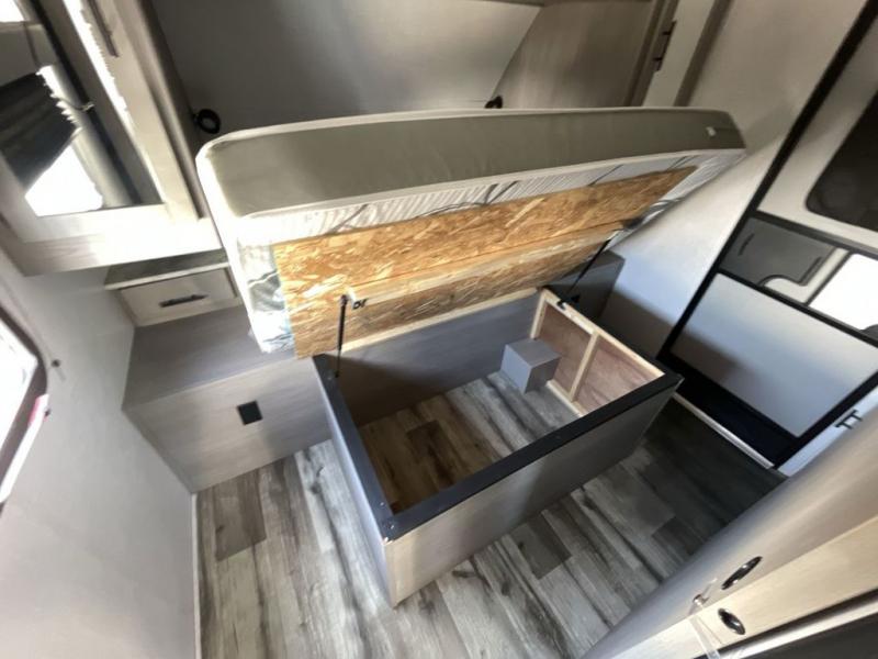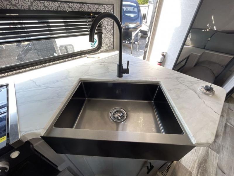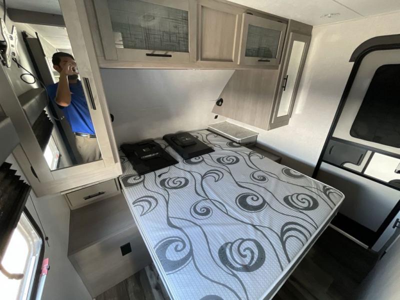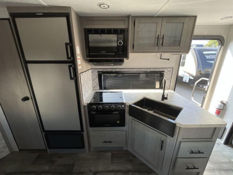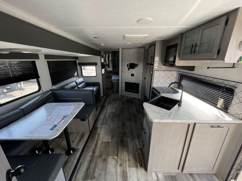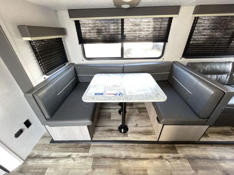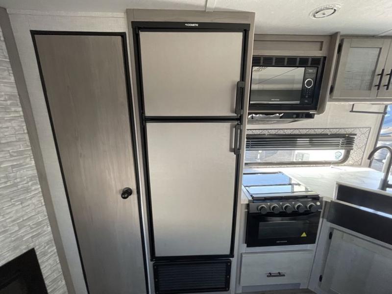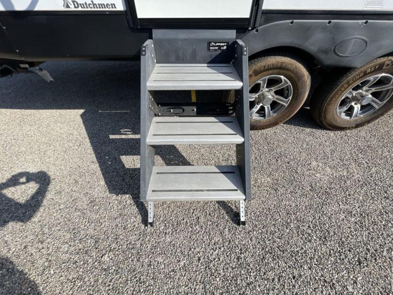 The Dutchmen Coleman Light travel trailer features an upgraded kitchen package with residential appliances, high-rise faucets, and a stainless steel farm-style sink. The fully enclosed underbelly allows all of your trailer's vital functions to be kept out of the freezing cold, and you'll have great stability as you enter your trailer by using the solid entry steps. Each model includes power stabilizer jacks, a power tongue jack, dual 20-LB propane tanks, a residential queen bed, and preparations for Wi-Fi 4G LTE. There is an aerodynamic front fiberglass cap, exterior speakers, solar charging connection, and aluminum wheels.