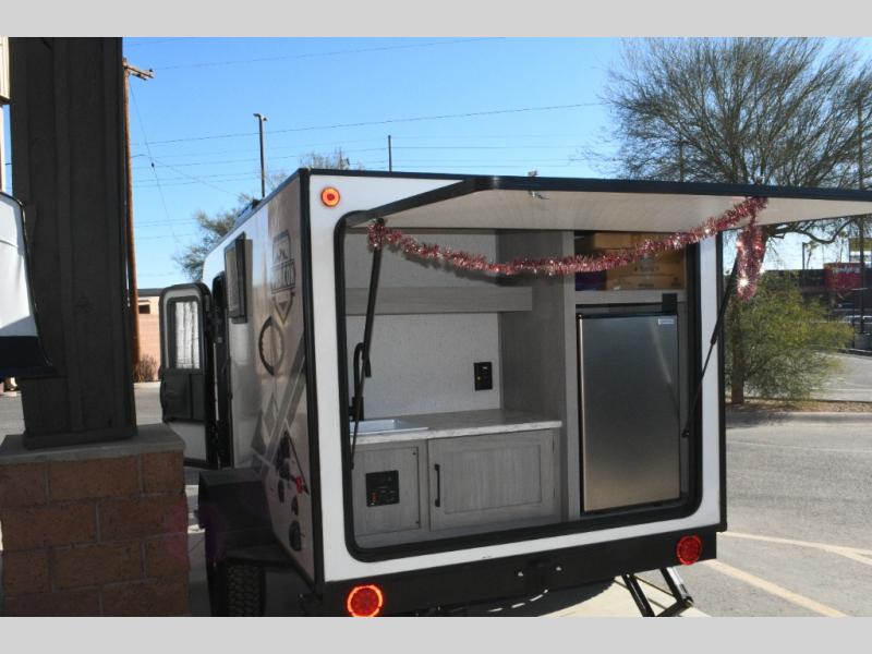 - Outdoor Hatch Kitchen: Enjoy cooking in the great outdoors with a rear hatch kitchen equipped with a sink, refrigerator, storage shelves, and cabinets. Perfect for quick meals and snacks!