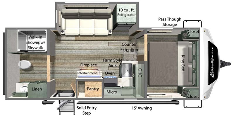 Experience the perfect blend of comfort, style, and adventure with the Dutchmen Eddie Bauer 23RB. Designed for couples or small families, this travel trailer offers residential-level amenities, a spacious rear bathroom, and the iconic Eddie Bauer styling that makes every trip feel like home.