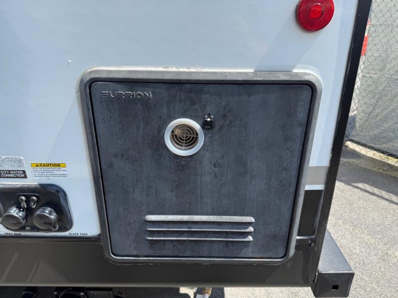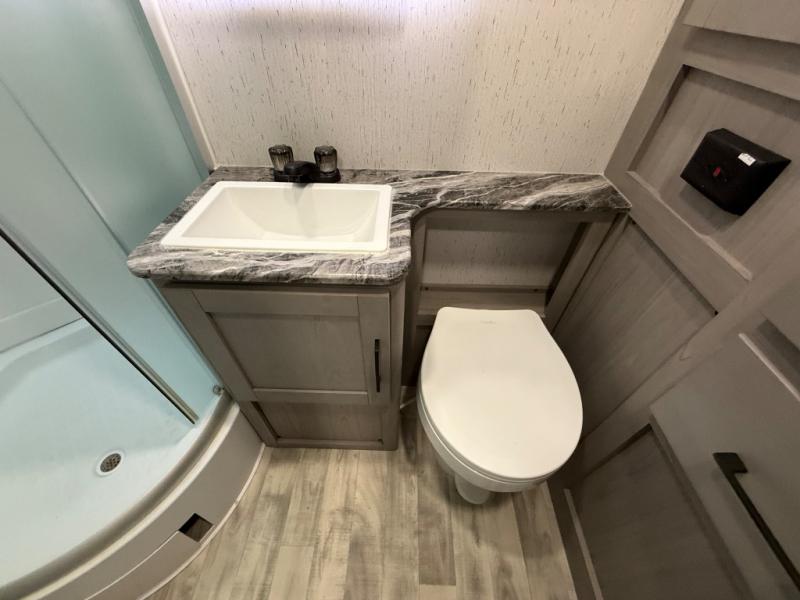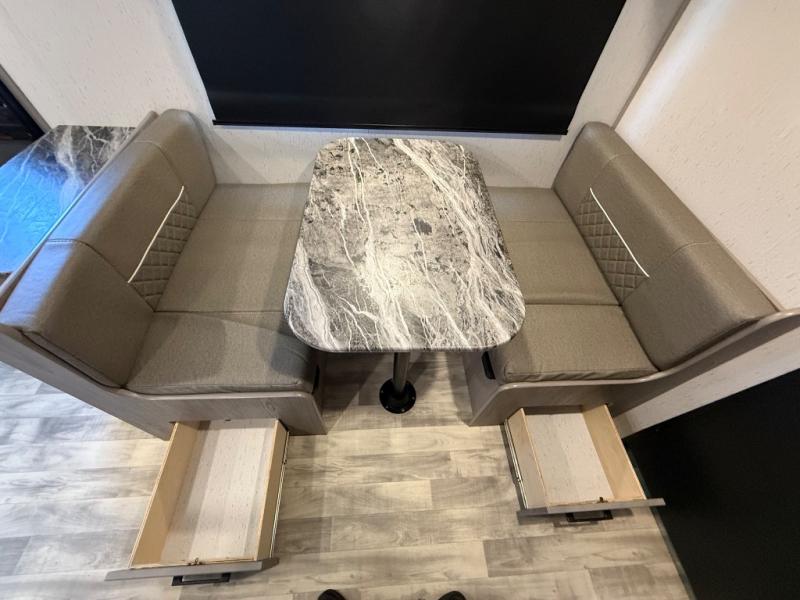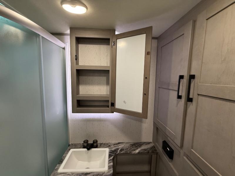 This couple's trailer is perfect for weekend excursions or extended getaways at your favorite state park. You will have your own queen bed up front with storage space for your things, and the full rear bath will add privacy and convenience. Prepare your meals on the three burner range or in the microwave oven, and you can dine together at the booth dinette. The dinette can also be used as additional sleeping space for one guest or two kids.