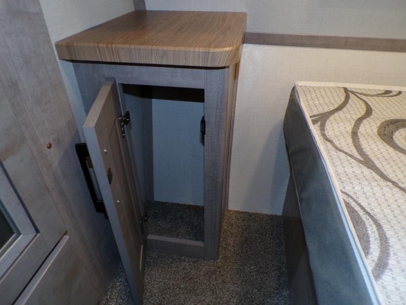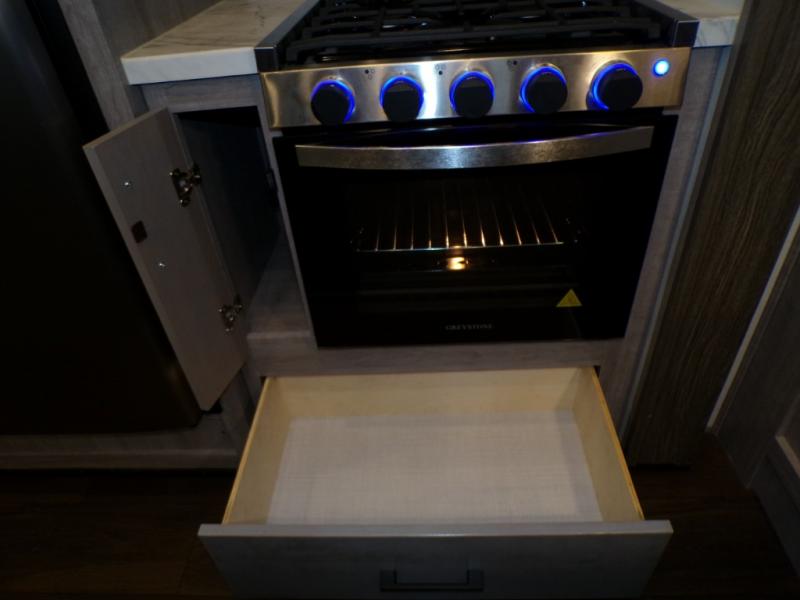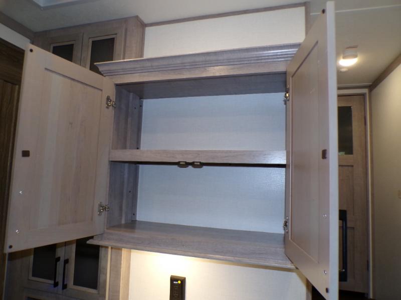 Head to the lake for unforgettable weekends riding the trails and kicking up some mud with this toy hauler in tow! Once you remove your toys from the 13' separate garage, you can set up the roll-over sofas that include a table in between them, and there is a convenient half bath here as well. Your guests can make this their bedroom at night, plus there is a Happi-Jack power bunk and a loft with a twin-size bed for the little ones! The main living area will be a favorite spot to hang since there are dual opposing slides for tons of space, a comfy sofa, plus a 50" TV with a fireplace below it for a more cozy feel. And check out the front private bedroom with a king-size bed and a slide out wardrobe to keep your clothes neat and tidy!