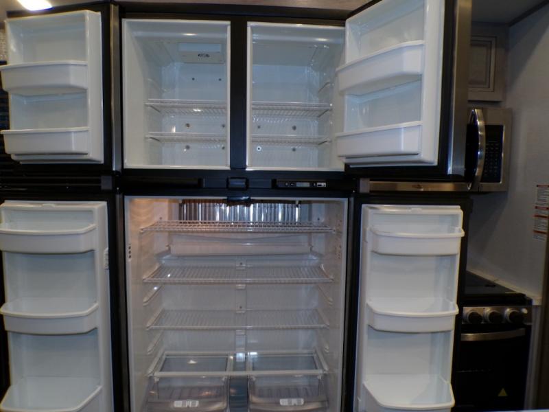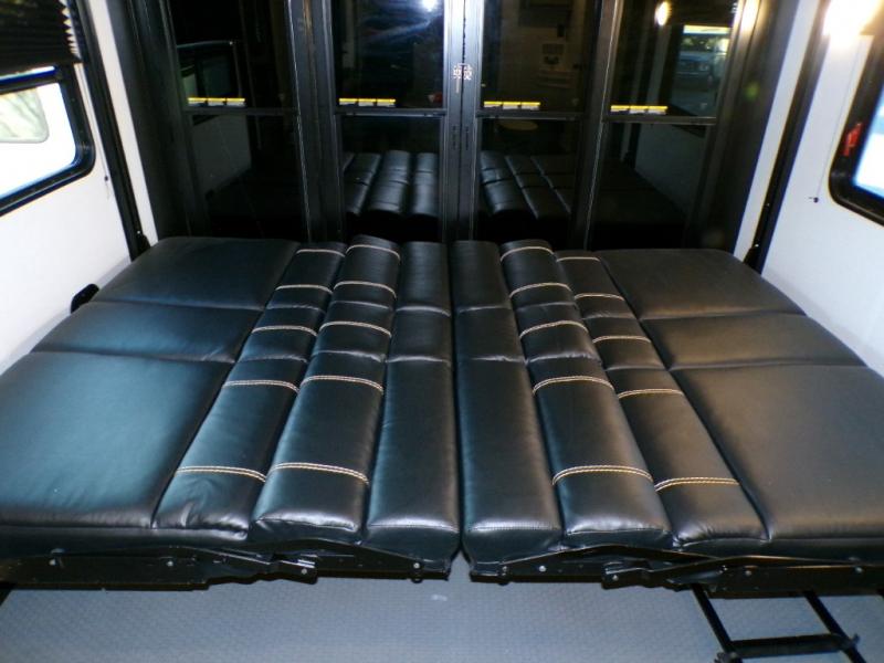 With any Voltage Triton toy hauler fifth wheel by Dutchmen you will appreciate the economical price point while still including many luxury features. The 7' slide boxes provide you with space to stretch out, plus there are oversized windows to let the sun through each morning. Some of the other interior comforts you are sure to love are the pleated night shades throughout the entire coach, the stainless steel kitchen sink, the upgraded heat and massage sofas, and more. Each model includes a 30" residential microwave, a 12 gallon water heater, plus two upgraded A/C's to keep you cool all summer long. The Triton garage is ready to house your favorite toys with 2,500 lb. tie-downs and a Tuff Ply floor, and you can add the optional ramp door patio system for more fun. You will also enjoy the two indoor/outdoor speakers, plus a pull down screen to keep the bugs out when you want to dine at the table.