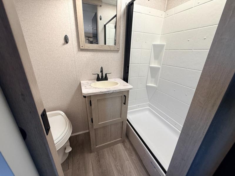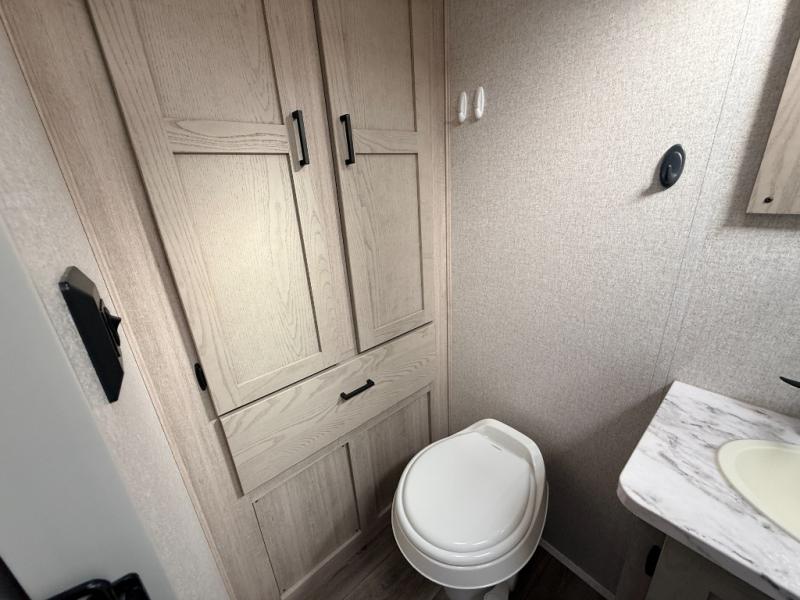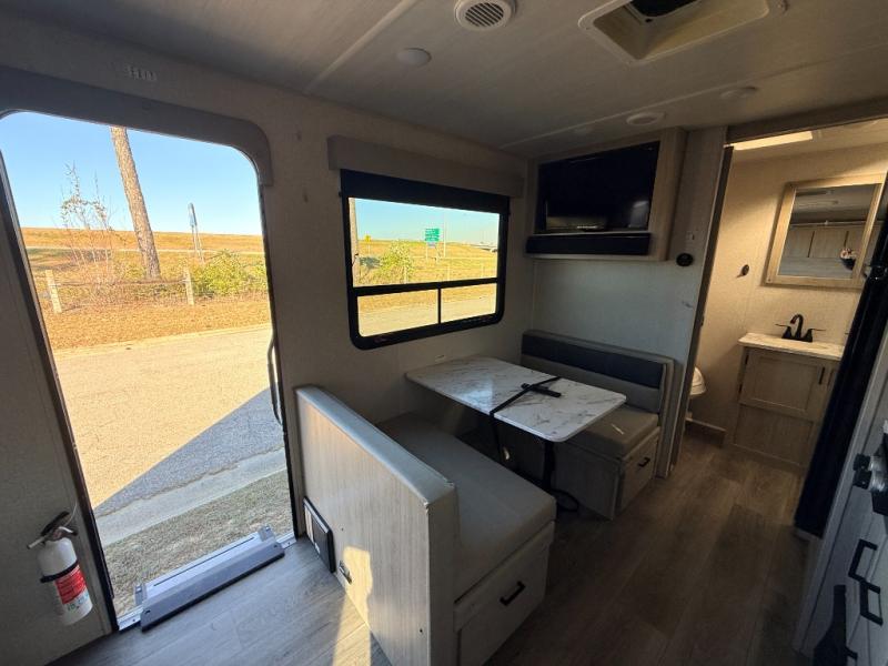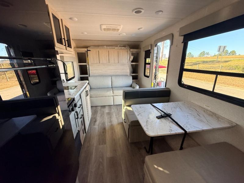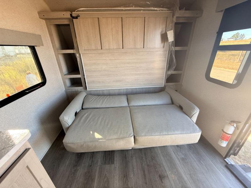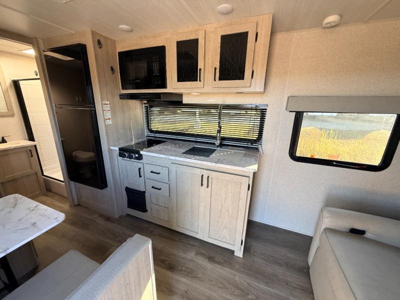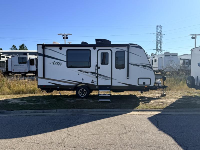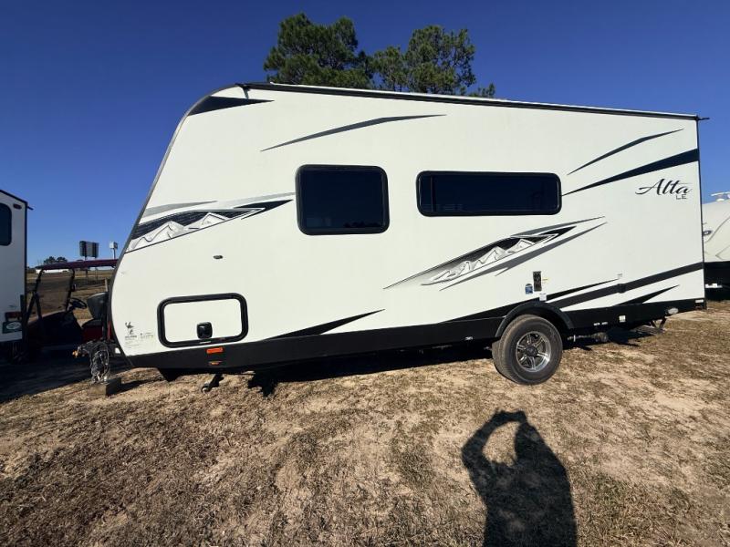 So much versatile space in this Alta travel trailer! The 1600MRB introduces the LE line of single axle Alta travel trailers. With a Murphy queen bed, you can stow it away during the day and relax on the sofa instead. The booth dinette has storage underneath on both sides, and an entertainment center is located above for easy watching of the optional TV. A full rear bath includes a shower with skylight, plus a wardrobe to store all your towels and toiletries. Outside you'll find more conveniences like an LP quick connect, TV hookup, and pass-through storage.