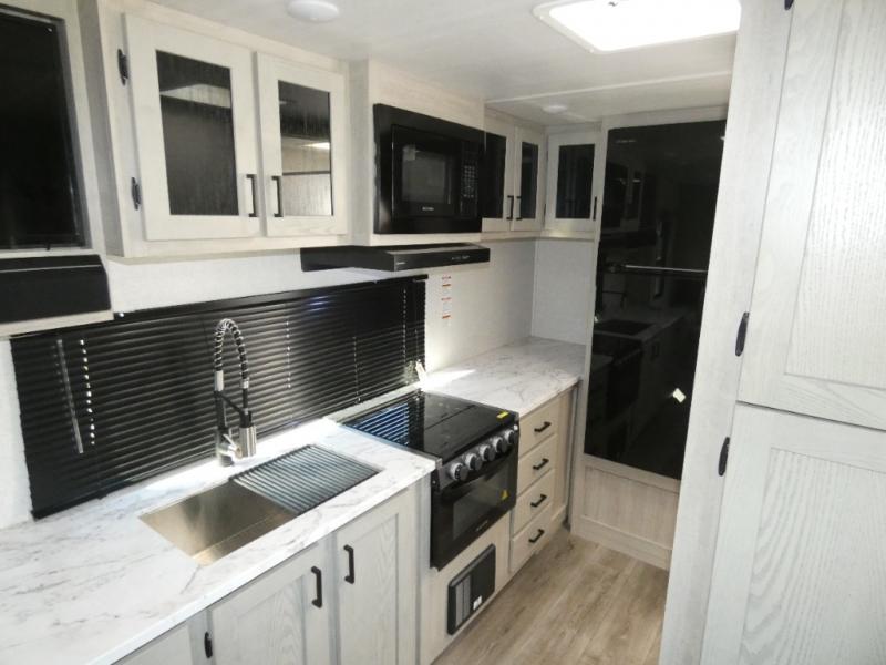 Each Alta travel trailer by EAST TO WEST is constructed with a 5" vacuum bonded roof, flush floor slide outs (where applicable), and diamond plate front rock guard for added protection. Outside, you'll find marine-grade exterior speakers, a universal docking station, and back-up camera prep that can be added to make maneuvering in and out of campgrounds easier than ever. There are USB charging stations for your tablet or phone and designer solid surface countertops you are sure to love. The furnace and 15,000 BTU ducted A/C with quick cool will keep you comfortable in any season, and the 81" interior ceiling height will provide ample space to move about without feeling confined. Start a new adventure in an Alta travel trailer today!