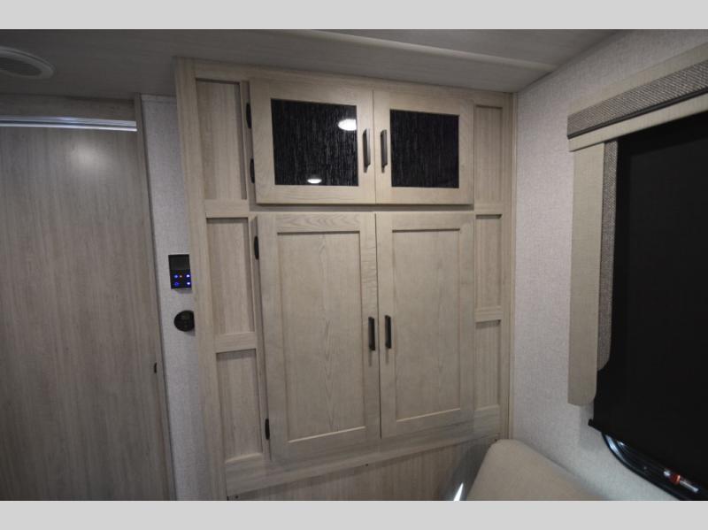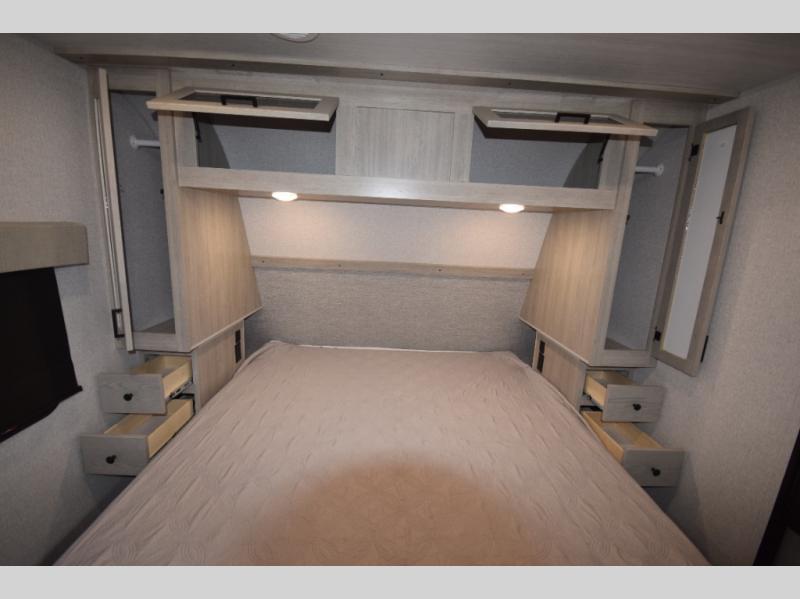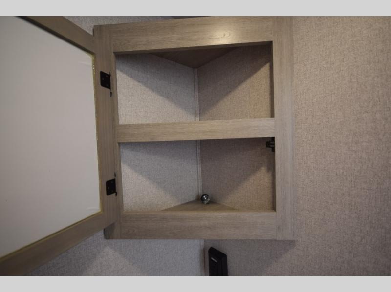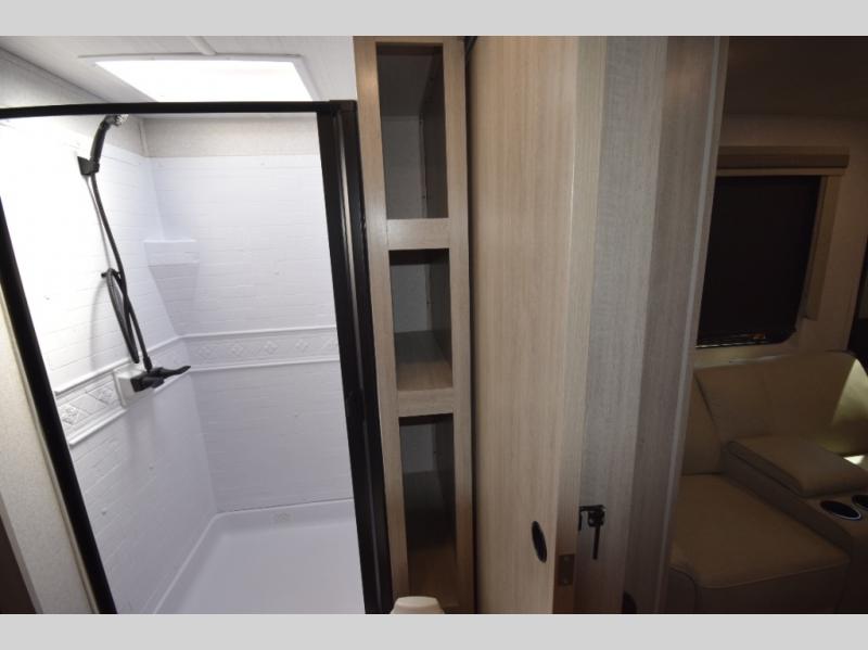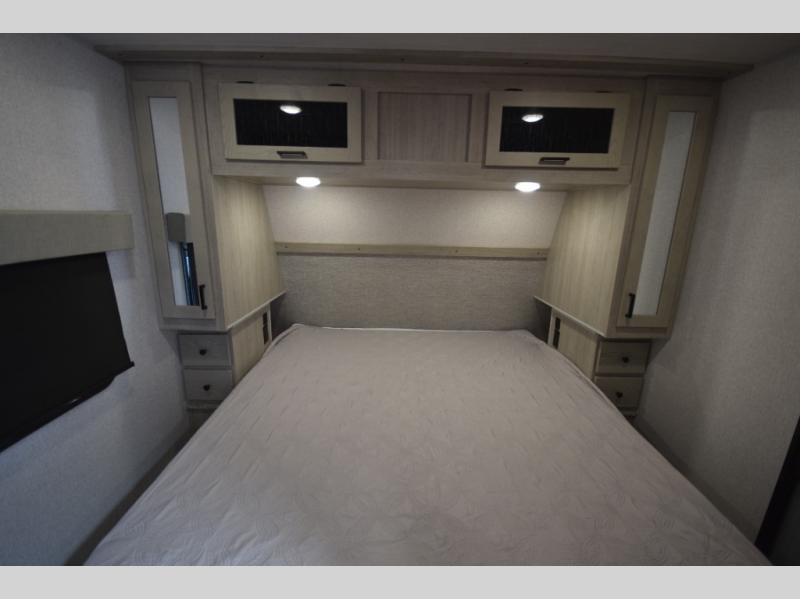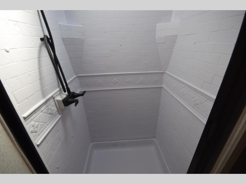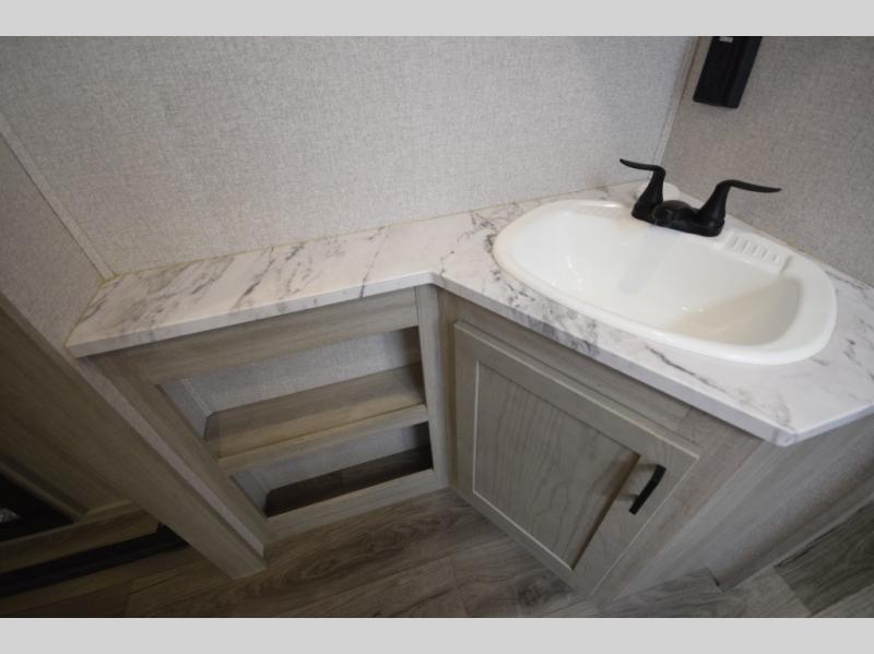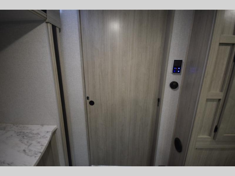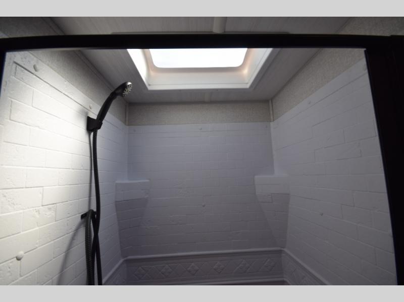 The walk-through bathroom provides plenty of space to move around and includes a skylight in the shower, flooding the room with natural light. And when it's time to turn in, retreat to your private front bedroom featuring a true king-size bed and its own separate entry door—perfect for slipping out in the morning without waking your travel partner.
