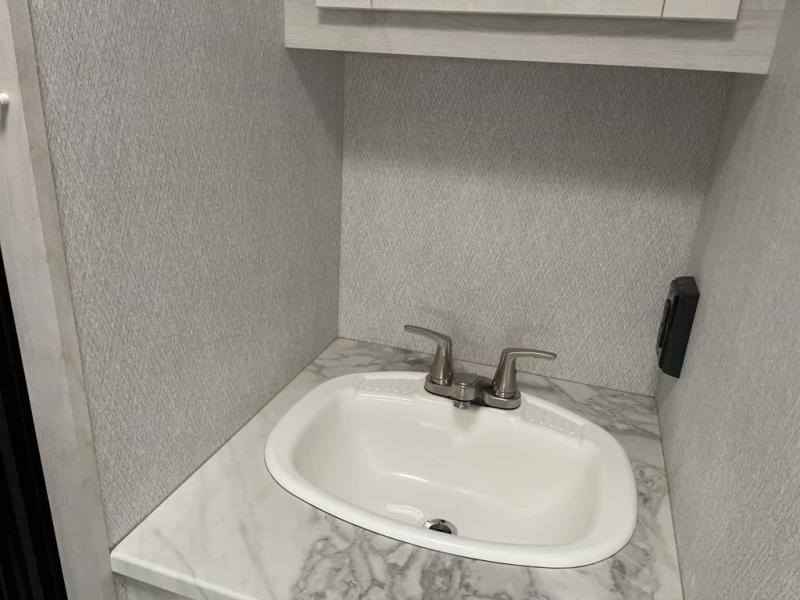 The journey will be oh-so enjoyable when you use this Entrada Class C gas motorhome to explore! You will be able to create meals each day that you are on the road because the kitchen has everything you will need, like a convection microwave, a round sink, a cooktop, a flip-up countertop, and a 10.7-cubic foot refrigerator. There is even a pantry/wardrobe for you to use to store spices, chips, or canned goods. Across from the queen bed slide, you'll find a private shower and toilet room so that you can get cleaned up in the morning, and the vanity with medicine cabinet is located just outside the bathroom so that someone can brush their teeth while another is showering.