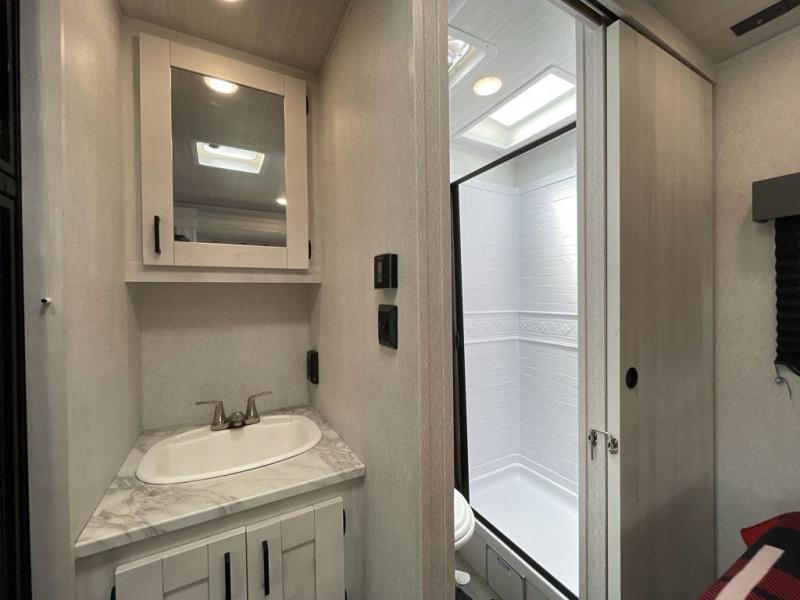 The journey will be oh-so enjoyable when you use this Entrada Class C gas motorhome to explore! You will be able to create meals each day that you are on the road because the kitchen has everything you will need, like a convection microwave, a round sink, a cooktop, a flip-up countertop, and a 10.7-cubic foot refrigerator. There is even a pantry/wardrobe for you to use to store spices, chips, or canned goods. Across from the queen bed slide, you'll find a private shower and toilet room so that you can get cleaned up in the morning, and the vanity with medicine cabinet is located just outside the bathroom so that someone can brush their teeth while another is showering.