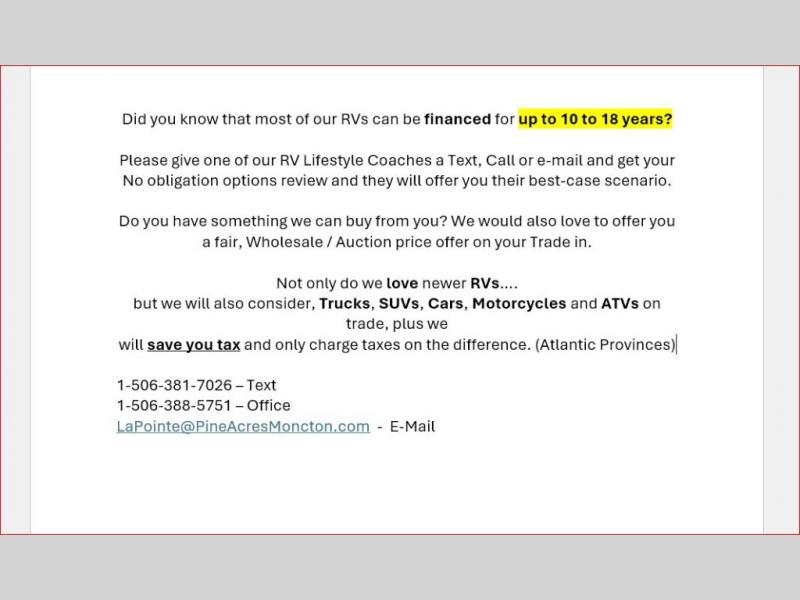Did you know that most of our RVs can be financed for up to 10 to 18 years?