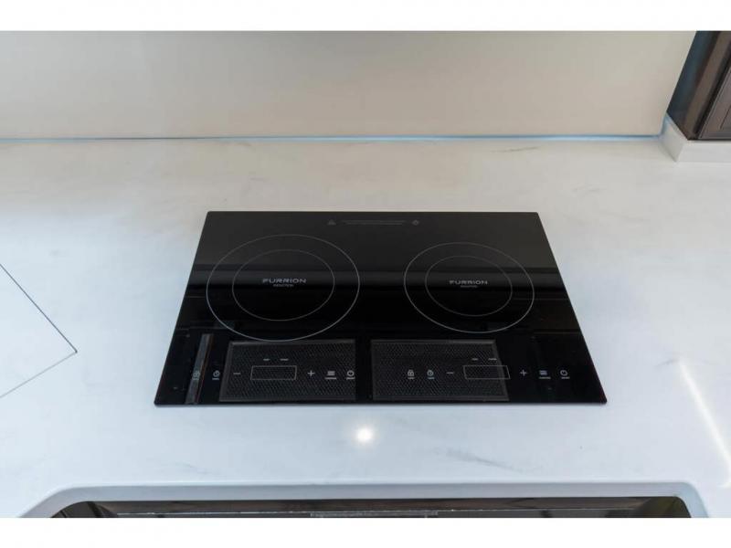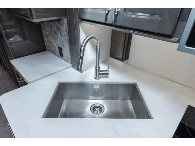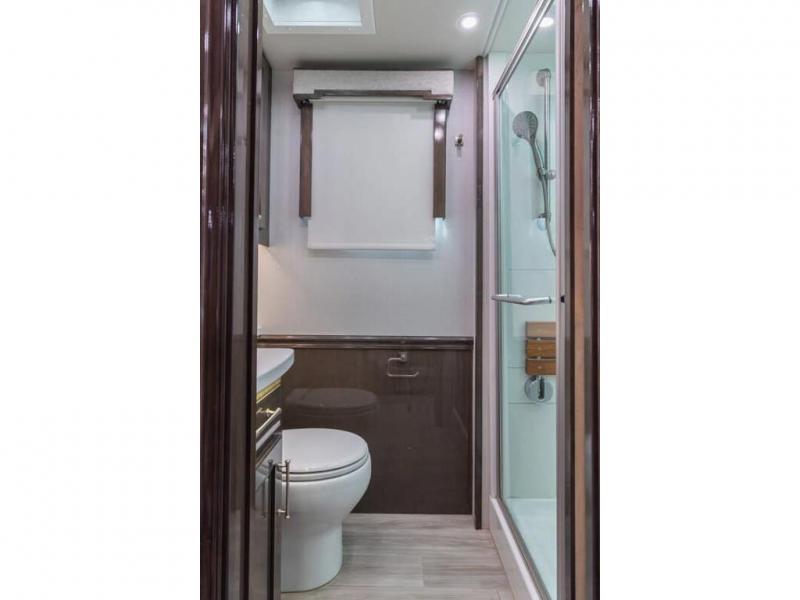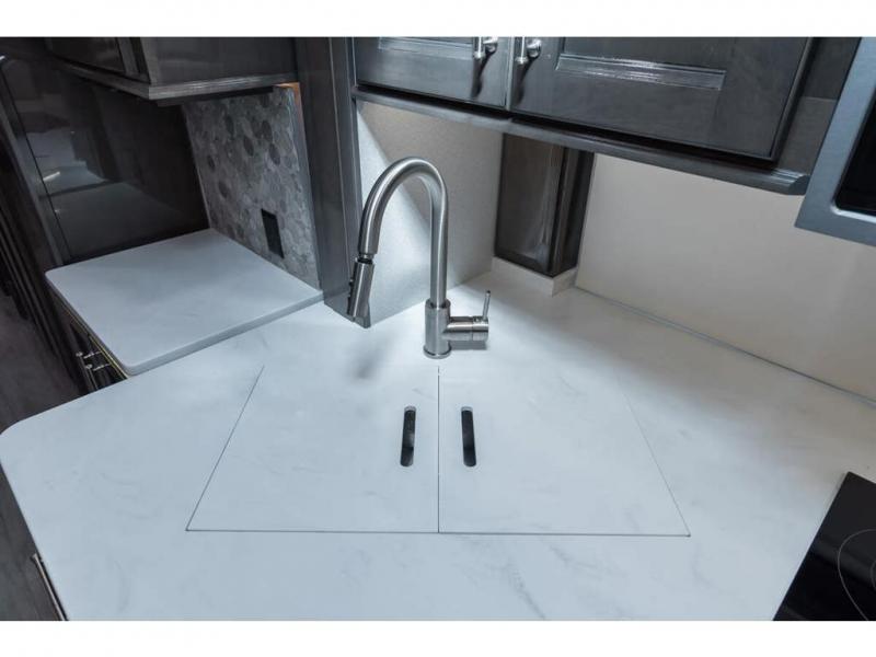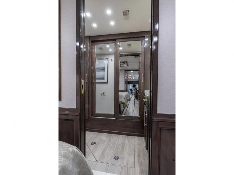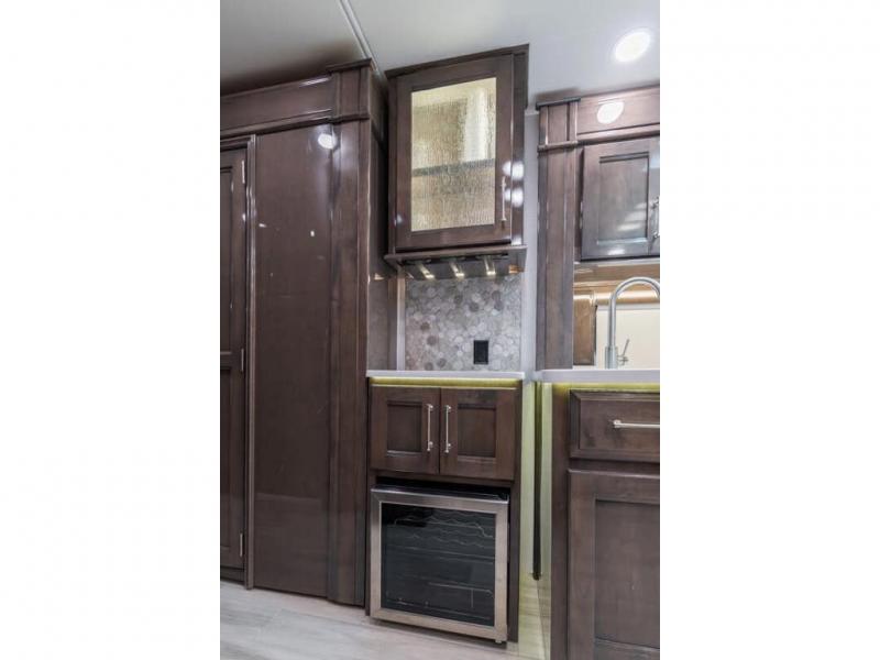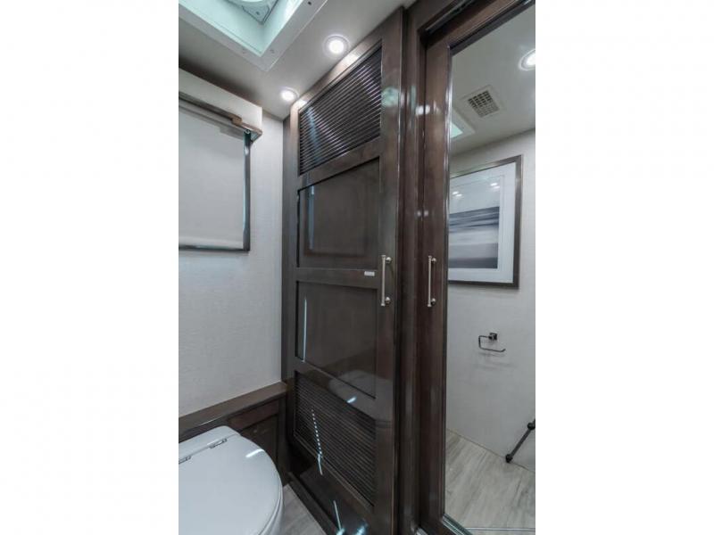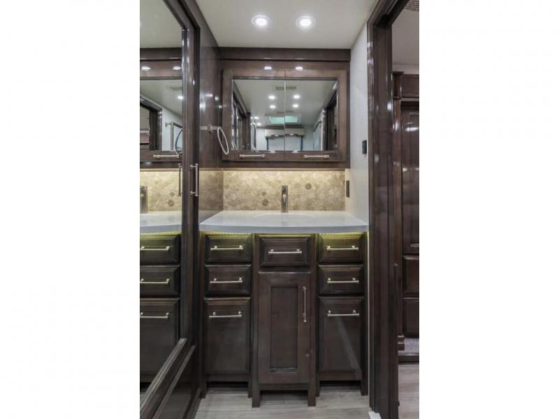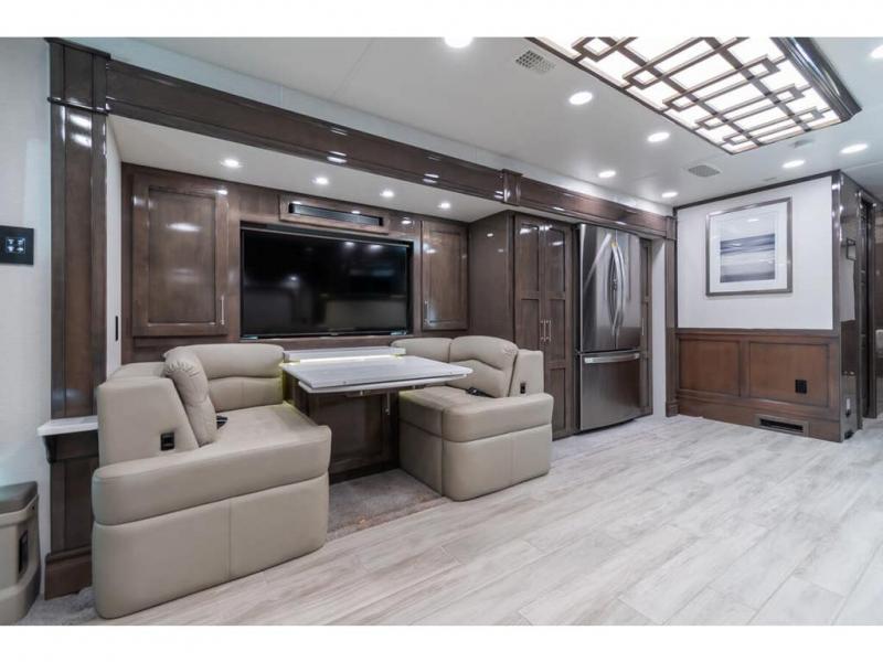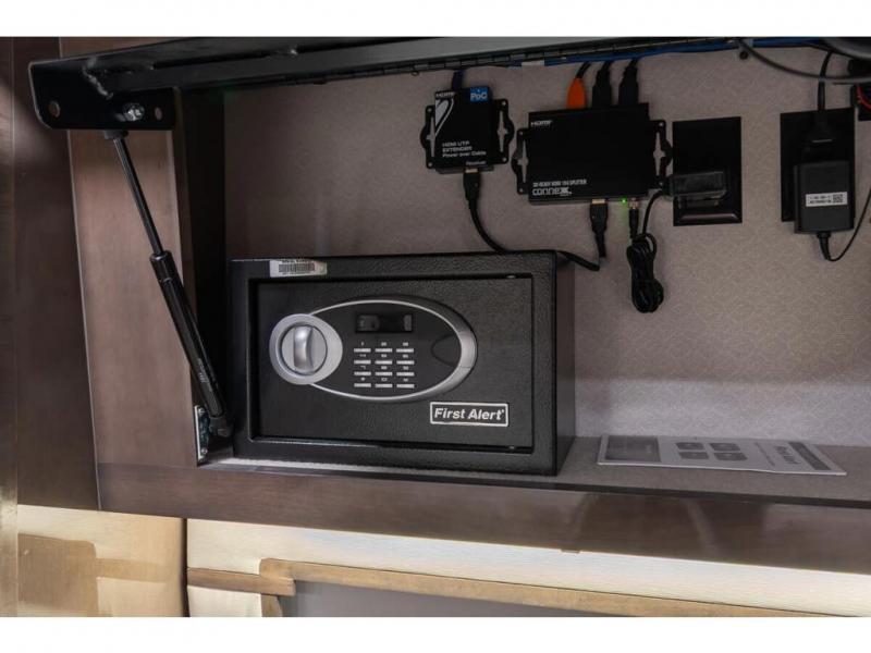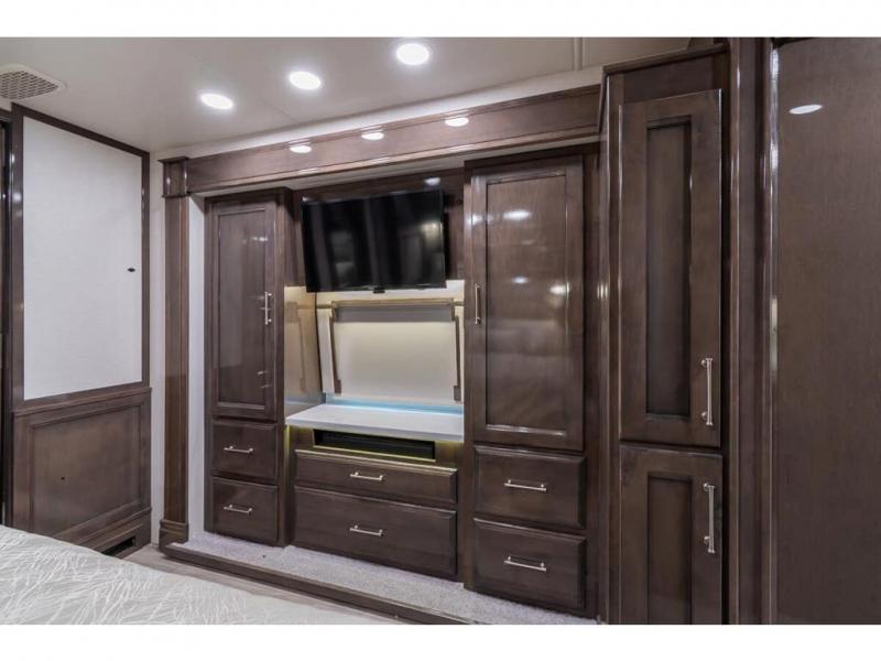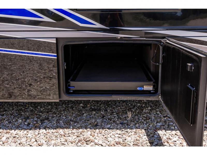 Your search for a family-friendly coach is over with this Aspire 44R! The power bunks include their own 24" TV's, and one of the full baths is right across from the bunks for convenience. You will enjoy the master bedroom all to yourselves with a king bed slide out, a 32" TV, and your own full rear bath with a spacious bath wardrobe. The kitchen is any chef's dream kitchen with its two burner induction cooktop, stainless steel residential refrigerator, two pantries, plus an additional refrigerator/cooler for drinks! This model also includes a hide-a-bed sofa for even more sleeping space, or you can add the optional power theater seating.
