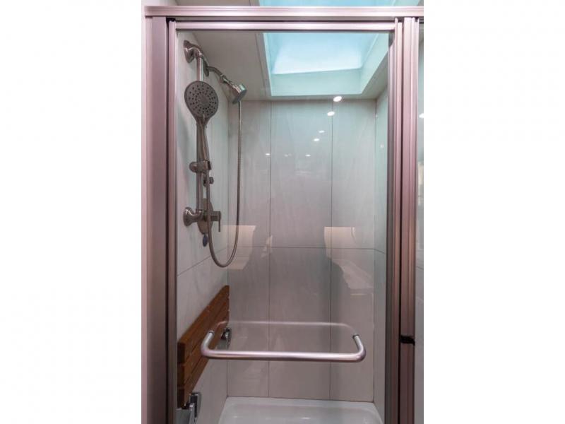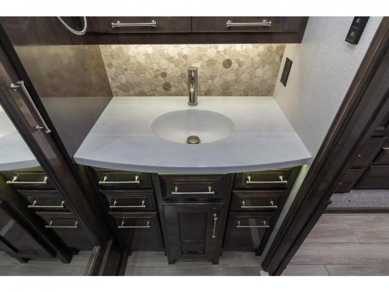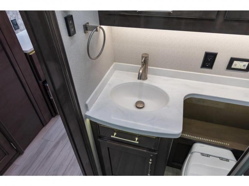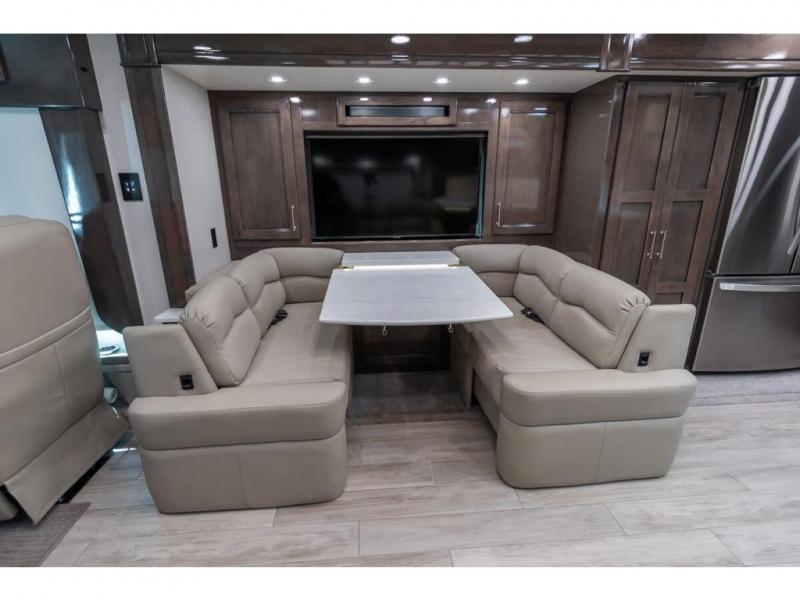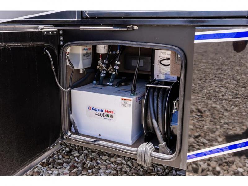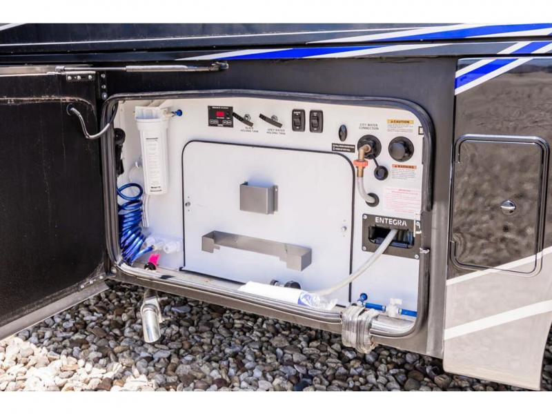 With any Aspire Class A diesel motorhome by Entegra Coach you will enjoy a smooth ride thanks to the Spartan K2 raised-rail chassis, the independent front suspension, and the E-Z Steer adjustable power steering assist. The leather captain's seats include 6-way power adjustment, lumbar and footrest functions that will have you sitting in the lap of luxury, plus there is a Valid infotainment system with a 15" touchscreen and a 360 degree camera system for easy maneuvering. You'll find many high-end features inside, including a Teakwood shower seat in the bath, a decorative ceiling feature, solid surface countertops with dimmable LED accent lighting, and premium Crown Compass furniture. The Aspire also features exterior amenities that will make being on the road easier than ever. The push-button, power-unlatching baggage doors let you unload in record-time, and the Girard awnings will provide tons of shade to relax outdoors. There are also two 190W solar panels, a Winegard WiFi Range Wi-Fi extender, a heated utility center, and much more!