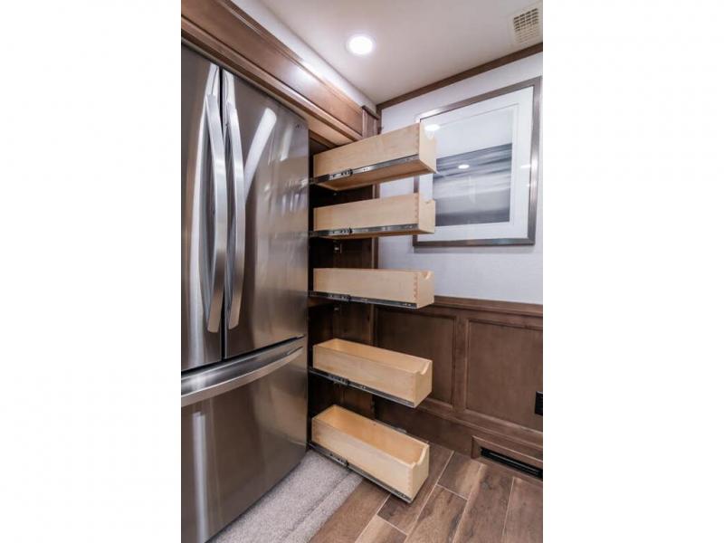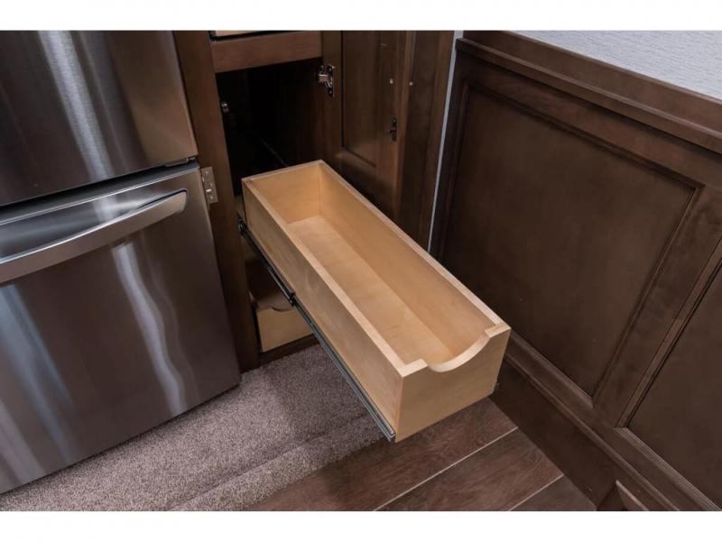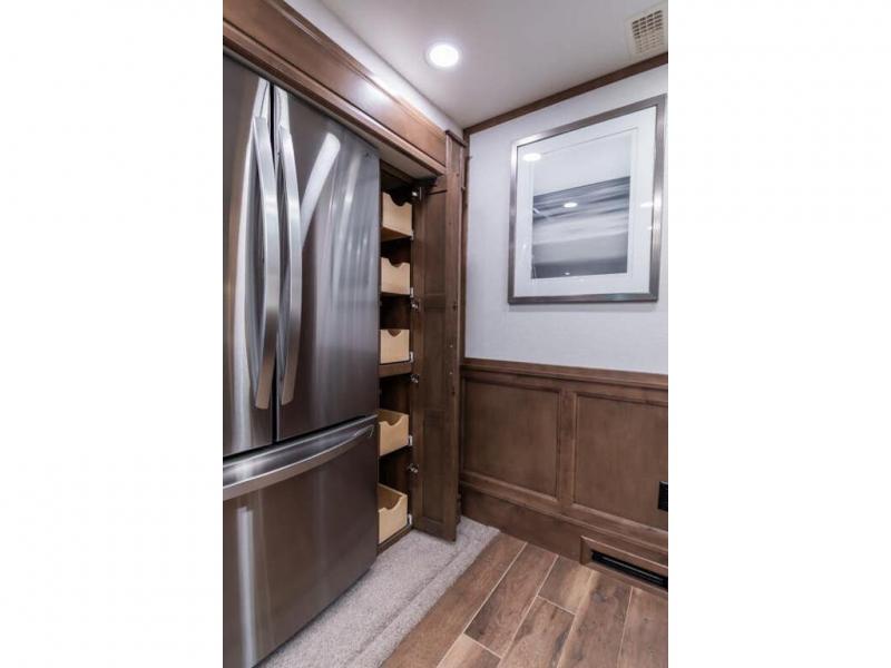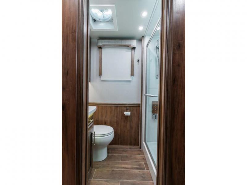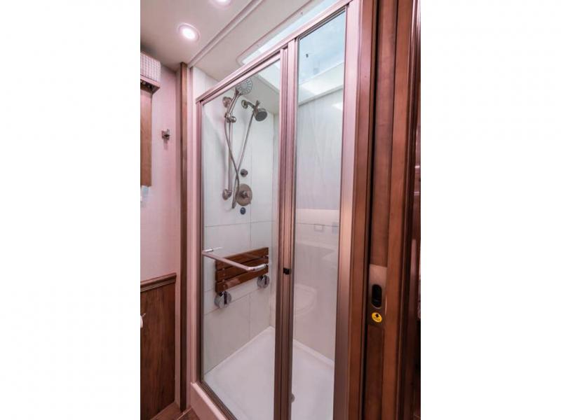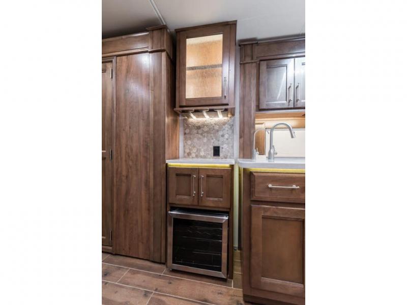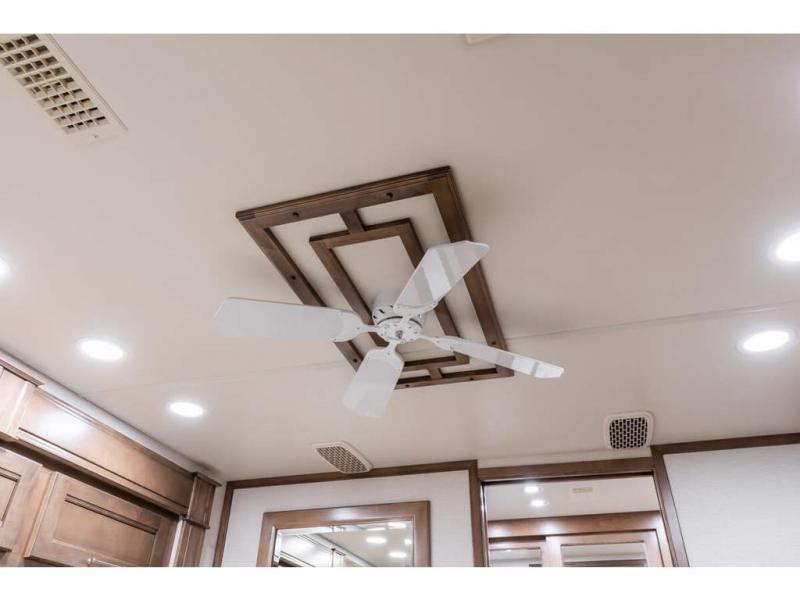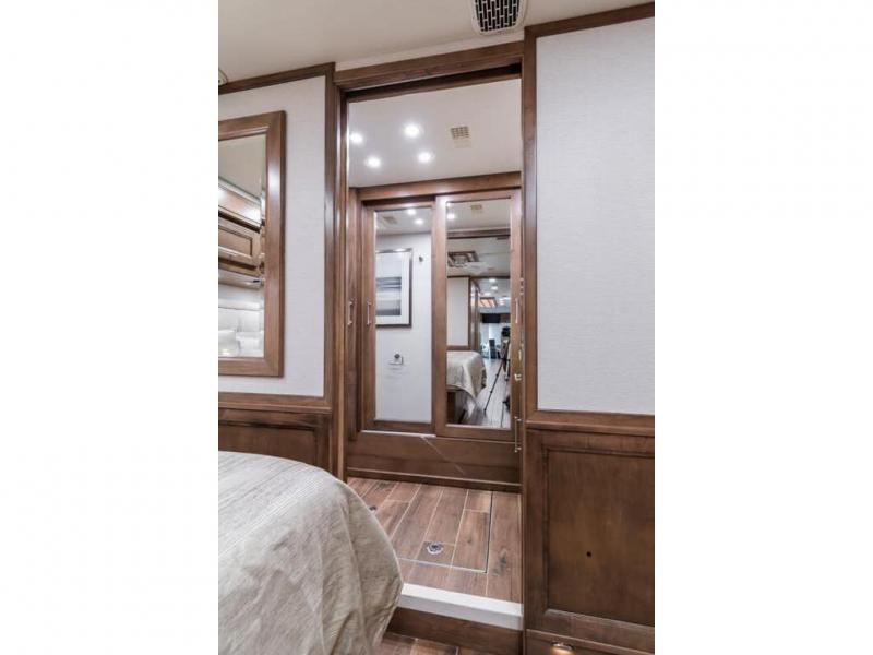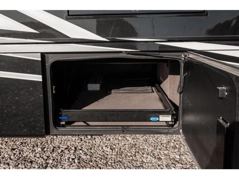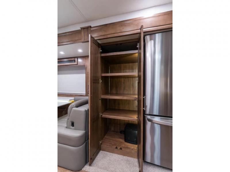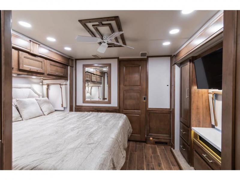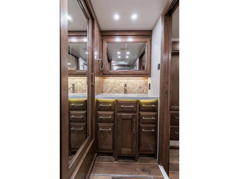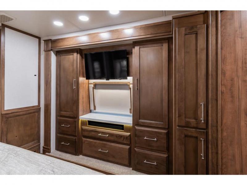Your search for a family-friendly coach is over with this Aspire 44R! The power bunks include their own 24" TV's, and one of the full baths is right across from the bunks for convenience. You will enjoy the master bedroom all to yourselves with a king bed slide out, a 32" TV, and your own full rear bath with a spacious bath wardrobe. The kitchen is any chef's dream kitchen with its two burner induction cooktop, stainless steel residential refrigerator, two pantries, plus an additional refrigerator/cooler for drinks! This model also includes a hide-a-bed sofa for even more sleeping space, or you can add the optional power theater seating.