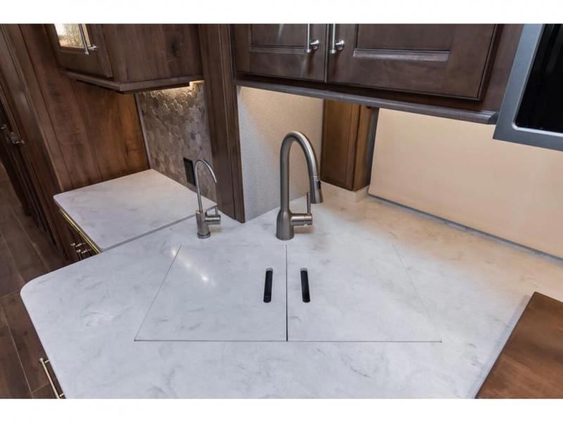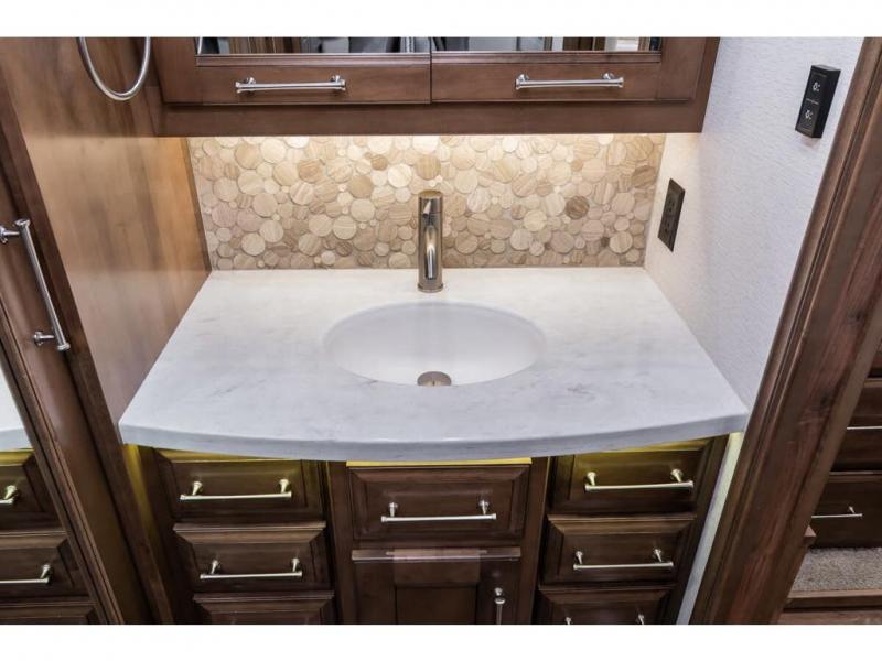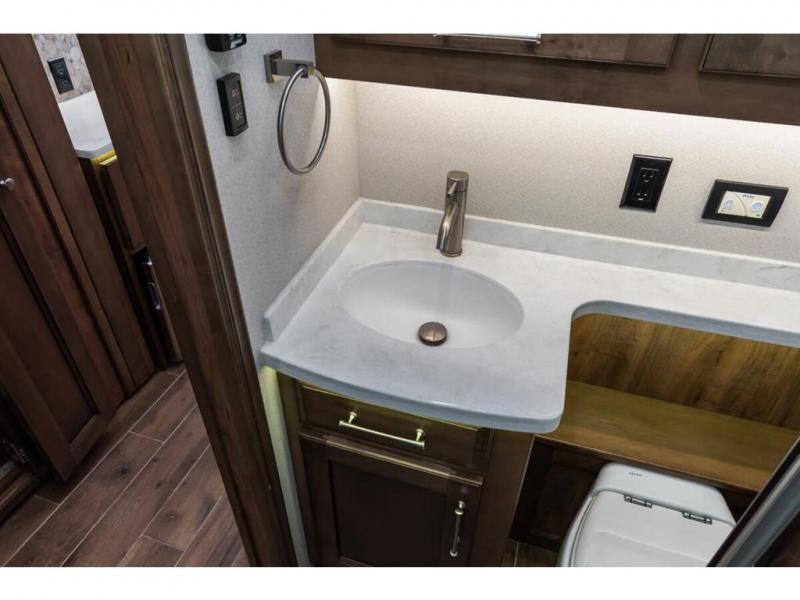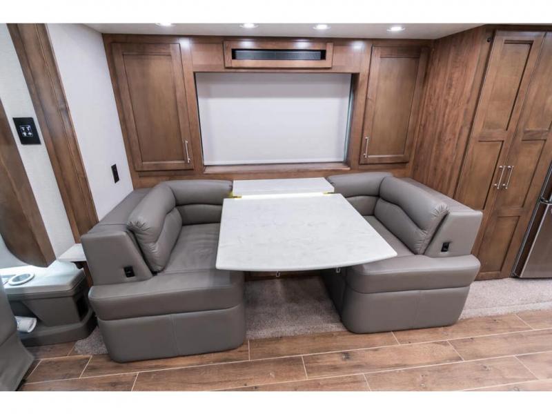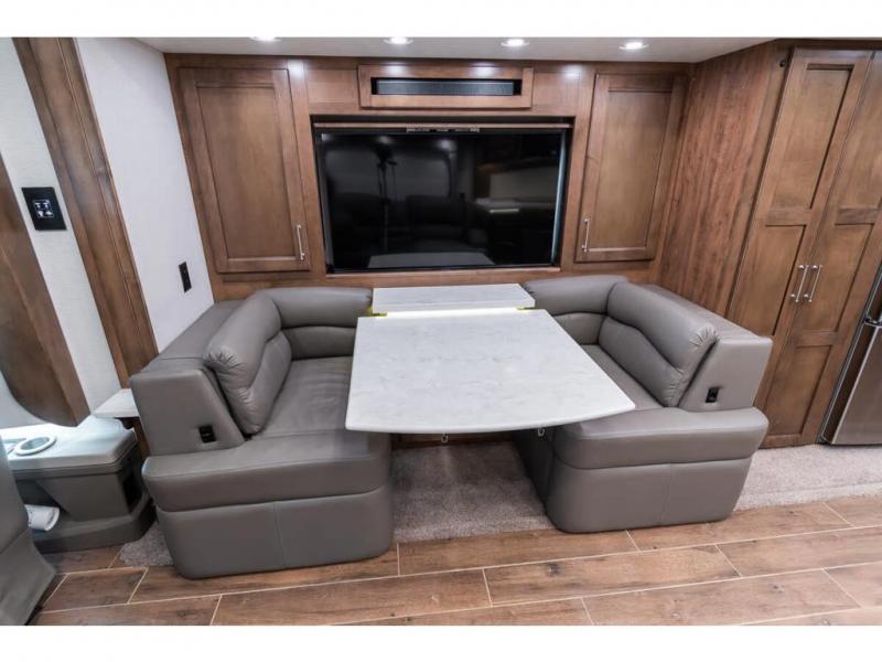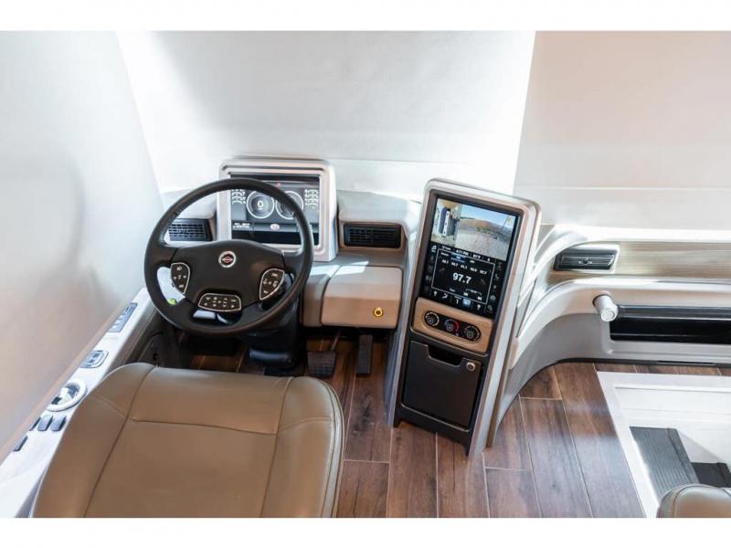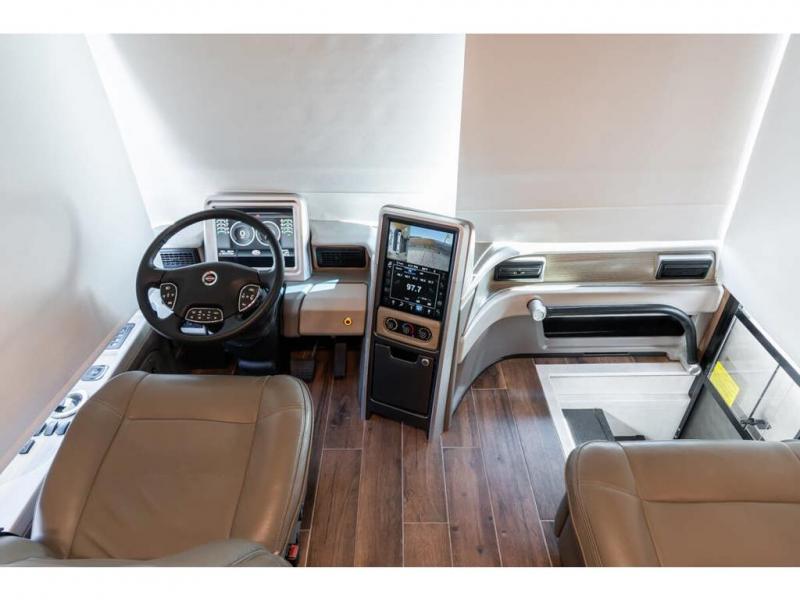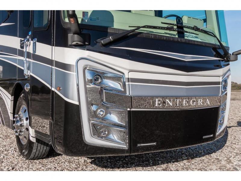 With any Aspire Class A diesel motorhome by Entegra Coach you will enjoy a smooth ride thanks to the Spartan K2 raised-rail chassis, the independent front suspension, and the E-Z Steer adjustable power steering assist. The leather captain's seats include 6-way power adjustment, lumbar and footrest functions that will have you sitting in the lap of luxury, plus there is a Valid infotainment system with a 15" touchscreen and a 360 degree camera system for easy maneuvering. You'll find many high-end features inside, including a Teakwood shower seat in the bath, a decorative ceiling feature, solid surface countertops with dimmable LED accent lighting, and premium Crown Compass furniture. The Aspire also features exterior amenities that will make being on the road easier than ever. The push-button, power-unlatching baggage doors let you unload in record-time, and the Girard awnings will provide tons of shade to relax outdoors. There are also two 190W solar panels, a Winegard WiFi Range Wi-Fi extender, a heated utility center, and much more!