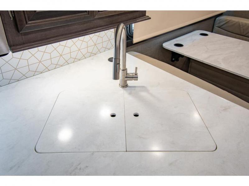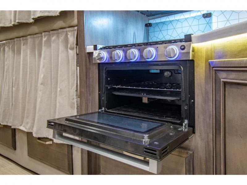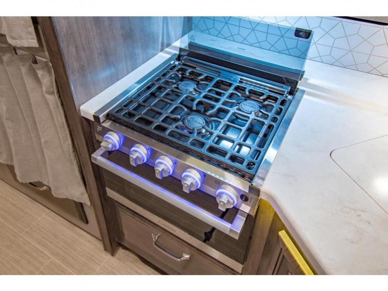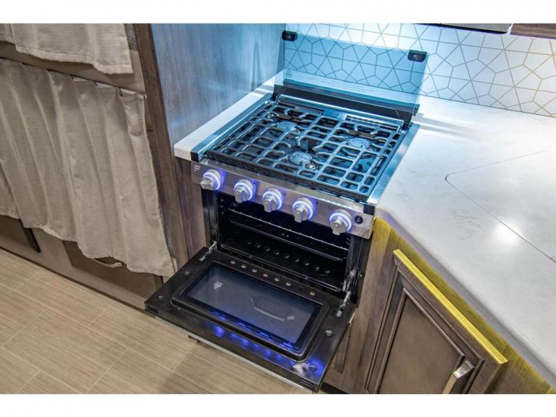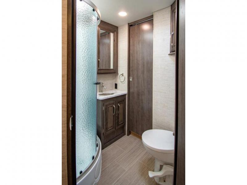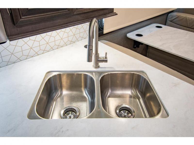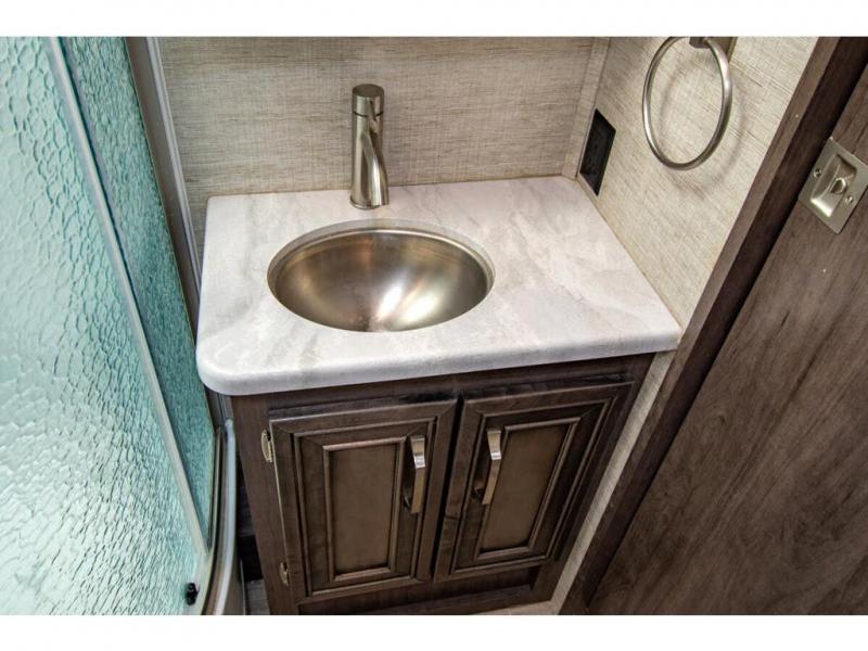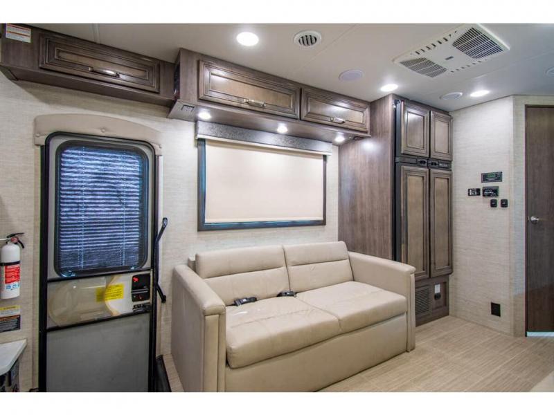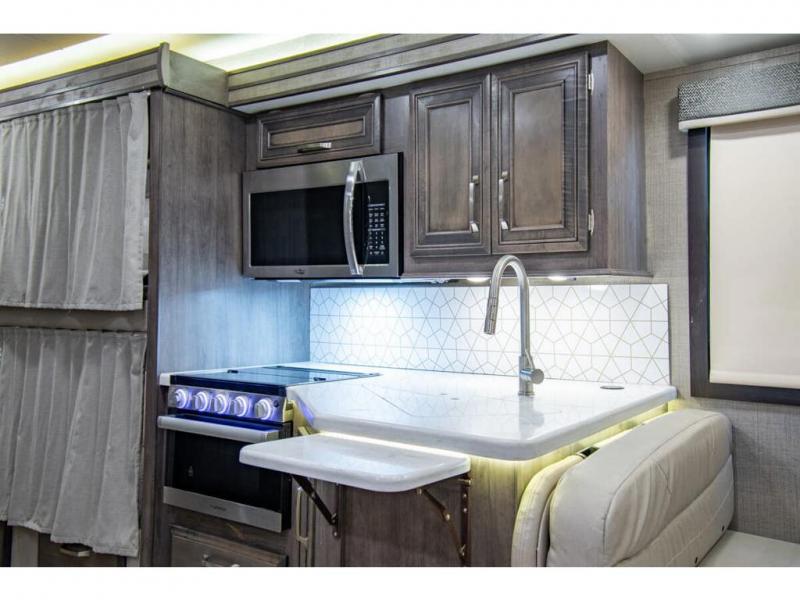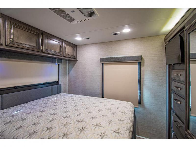 The whole family can travel together in this motorhome! The kiddos can sleep on the set of bunk beds and you can sleep on the 60" x 74" queen bed in the rear private bedroom. Everyone can easily access the dual entry bathroom to freshen up in the 32" radius shower each morning. Cook up delicious meals on the three burner cooktop, then head to the booth dinette which can also transform into an extra sleeping space. You can take an afternoon nap on the sofa or head outdoors to watch the big game at the exterior LED HD Smart TV underneath the 18' electric awning with LED lights to highlight the good times!