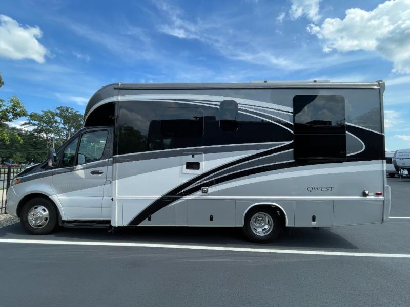 The Entegra Coach Qwest Class C diesel motorhome is built upon a premium Mercedes-Benz 3500 chassis with a fuel-injected V-6 turbo-diesel engine to power your trips near and far. Each model is constructed with TuffShell vacuum-bond laminated sidewalls, premium Sikkens full-body paint, and bead-foam insulation so you can travel year around. Navigate like a pro with the 10.25 inch integrated Mercedes-Benz infotainment center with GPS, and you are sure to stay comfortable in the captain's seats. Some of the interior comforts you will enjoy with the Qwest are the Tecnoform high-gloss countertops, the large bedroom wardrobes, and the day/night roller shades. And we didn't even mention the convenient exterior features, like the Girard armless awning with LED lights, the outside shower, and the exterior utility center.