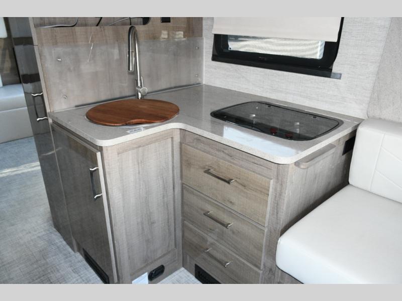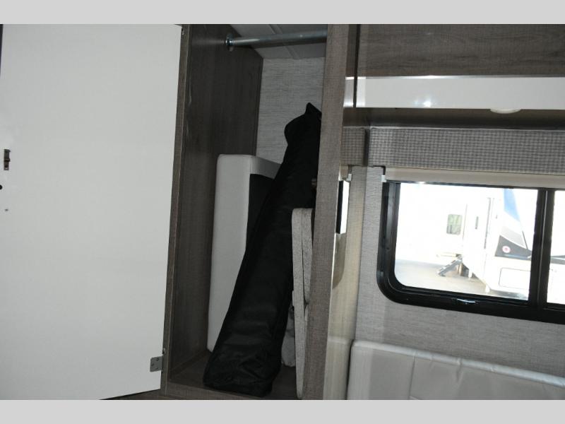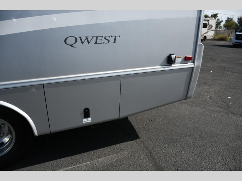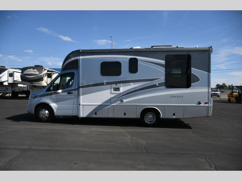 The Qwest 24N maximizes every inch of space while providing premium features typically found in larger motorhomes. Its Murphy bed and cab-over bunk provide flexible sleeping solutions, while the modern kitchen and full bathroom make life on the road comfortable and practical. Exterior features like the awning, outside shower, and utility center expand your living space and make outdoor enjoyment effortless.